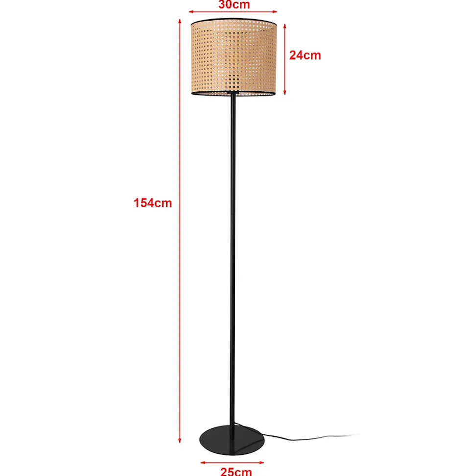 LampadaireNotre lampe sur pied au style intemporel apportera une touche d’élégance à votre intérieur, que ce soit dans votre salon, votre chambre ou votre bureau. Sa lumière douce et chaleureuse créera une ambiance agréable, offrant à la fois une source de lumière fonctionnelle et une touche esthétique à votre espace.Description :- luminaire moderne et sophistiqué- le choix idéale à n’importe quelle pièce de votre maison- abat-jour avec un aspect décoratif en rotin- avec une douille de lampeCaractéristiques techniques :- douille : 1 x E27, max. 60W (ampoule non incluse)- alimentation : 230V, 50HzMatière :- métal + plastiqueDimensions:- totales (hauteur x diamètre) : 154 x 30 cm- abat-jour (hauteur x diamètre) : 24 x 30 cm- diamètre du pied : 25 cm- longueur du câble : 180 cmCouleur :noir / beigeContenu de la livraison :1 x lampadaire (ampoule non incluse)Produit de la marque :lux.pro
