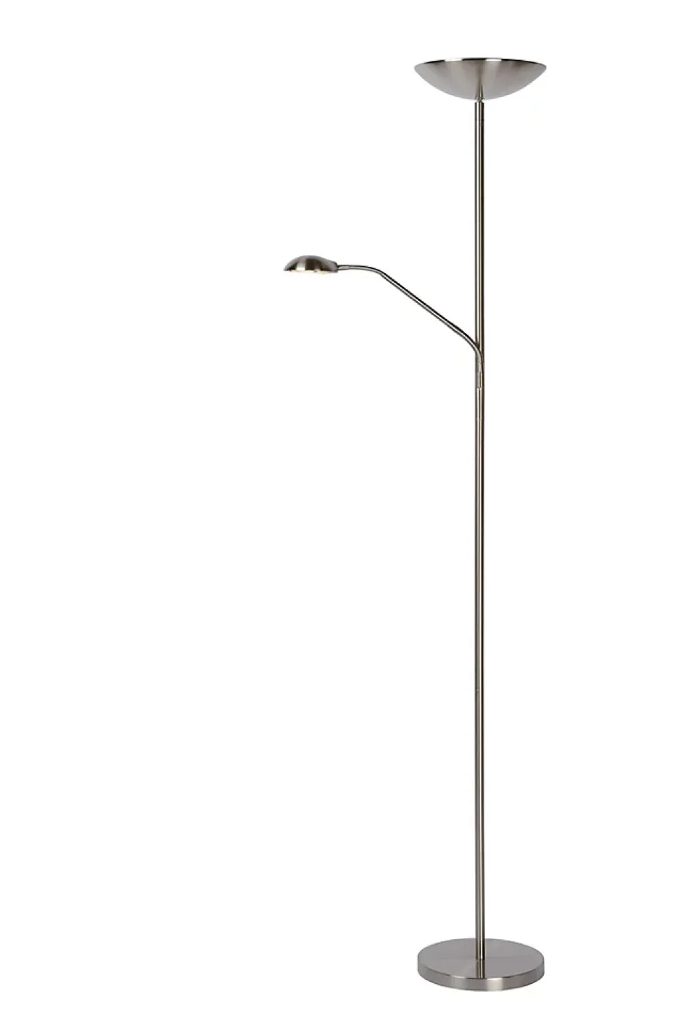 Deux lampadaires au prix d’un. Ce lampadaire combine une lampe de lecture dirigeable avec un interrupteur haut de gamme. Le lampadaire est muni non pas d’une ampoule à LED intégrée, mais de deux. Son fonctionnement est simple. Les deux interrupteurs sont soigneusement intégrés dans la conception de la lampe et peuvent être utilisés séparément parfaitement. Une polyvalence à tout moment. Le bras de lecture peut être incliné pour un éclairage parfait. L’aluminium de haute qualité assure un look élégant et des années de plaisir. Ce lampadaire convient aussi bien à votre salon qu’a votre chambre.Caractéristiques uniques:• Équipé d’une lampe LED intégrée à intensité variable• Dispose d’une lumière blanche chaude (3000K)• Cette lampe est rotative (verticalement)• Avec bouton d’intensité variable sur la lampe• Fabriqué en métalPrincipales caractéristiques du produit:• Consommation énergétique: 1x20W / 230V / A intensité variable (Ampoule incluse)• Dimensions: Lon.25,4 x Larg.53,2 x Haut.180 cm• 3 Ans garantie sur le luminairePourquoi choisir l’éclairage Lucide?Lucide incarne un design innovant, un savoir-faire artisanal et une fiabilité exemplaire. En tant qu’entreprise familiale belge avec plus de trois décennies d’expertise, nous concevons des éclairages de haute qualité qui enrichissent et transforment chaque espace, tant intérieur qu’extérieur. Notre collection polyvalente comprend des luminaires durables et des sources lumineuses économes en énergie, soigneusement conçus par nos propres experts et fabriqués selon les normes CE les plus strictes. Grâce à notre large gamme, nous vous proposons toujours une solution d’éclairage adaptée, quel que soit le style ou l’espace. Ainsi, nous illuminons non seulement votre espace de vie mais aussi votre processus de choix dans la recherche d’un éclairage de qualité et abordable. Chez Lucide, nous combinons innovation et savoir-faire pour un écl…