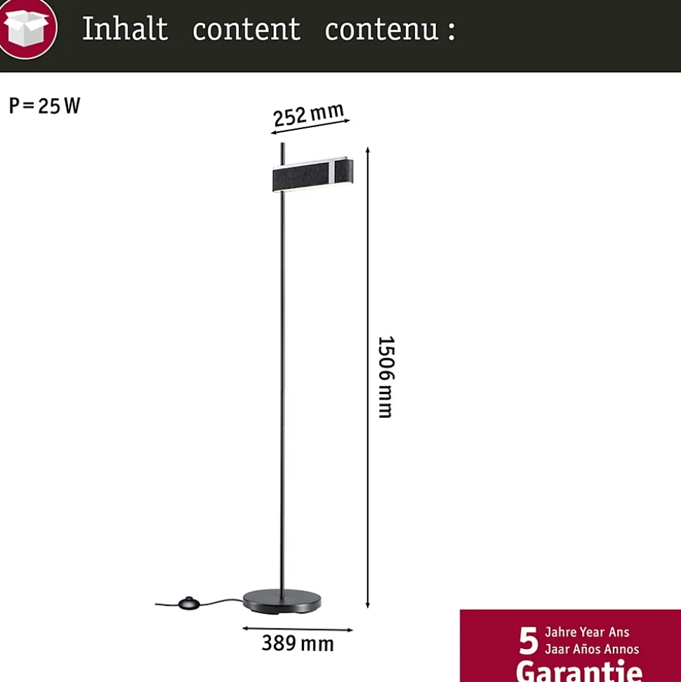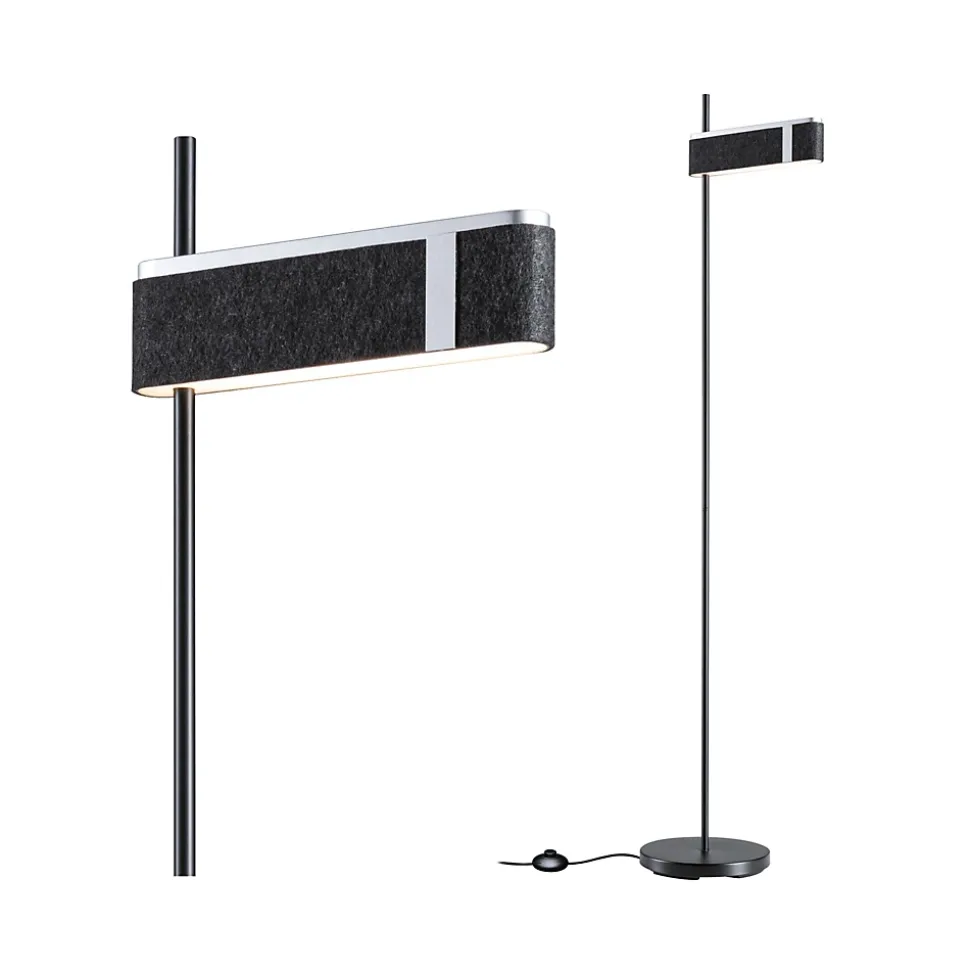 Le lampadaire LED Jagun en feutre et coloris Anthracite avec 1250lm impressionne par son design moderne et sobre et crée une atmosphère agréable. En outre, ce multitalent réduit les bruits de fond dérangeants. Autre atout : ce luminaire est en matériau durable et recyclable. Elle trouve sa place par exemple dans le salon à côté du canapé ou du fauteuil, ou encore dans le bureau à domicile, à côté du bureau. La température de couleur chaude produit une ambiance agréable pour les heures de détente à la maison. L’interrupteur à pied permet de faire varier l’intensité de la lampe sur trois niveaux. Grâce à la fonction de mémoire, le luminaire enregistre toujours vos réglages préférés.