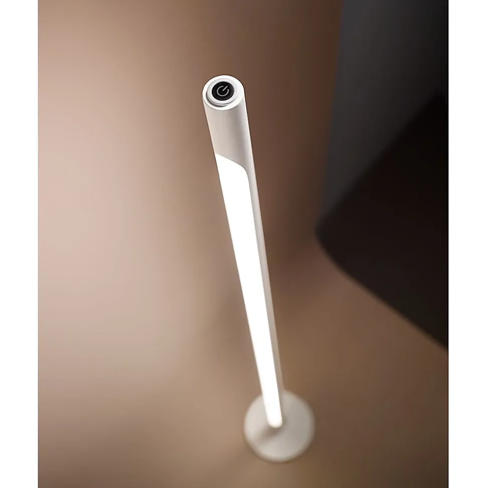 Lampadaire LED Stick en métal peint en blanc.Lampadaire LED ø 18cm et H140cm.Lampadaire LED 25W, 1600lm et une température de couleur unique : 3000°K.Lampadaire LED équipé d’un variateur qui permet de régler le flux lumineux.Lampadaire élégant idéal pour les environnements modernes, pour les salons ou les bureaux, les chambres ou les bureaux.Lampadaire LED largement utilisé dans les cabinets professionnels de géomètres, d’avocats, d’architectes ou de compagnies d’assurance. Le lampadaire LED produit par Perenz