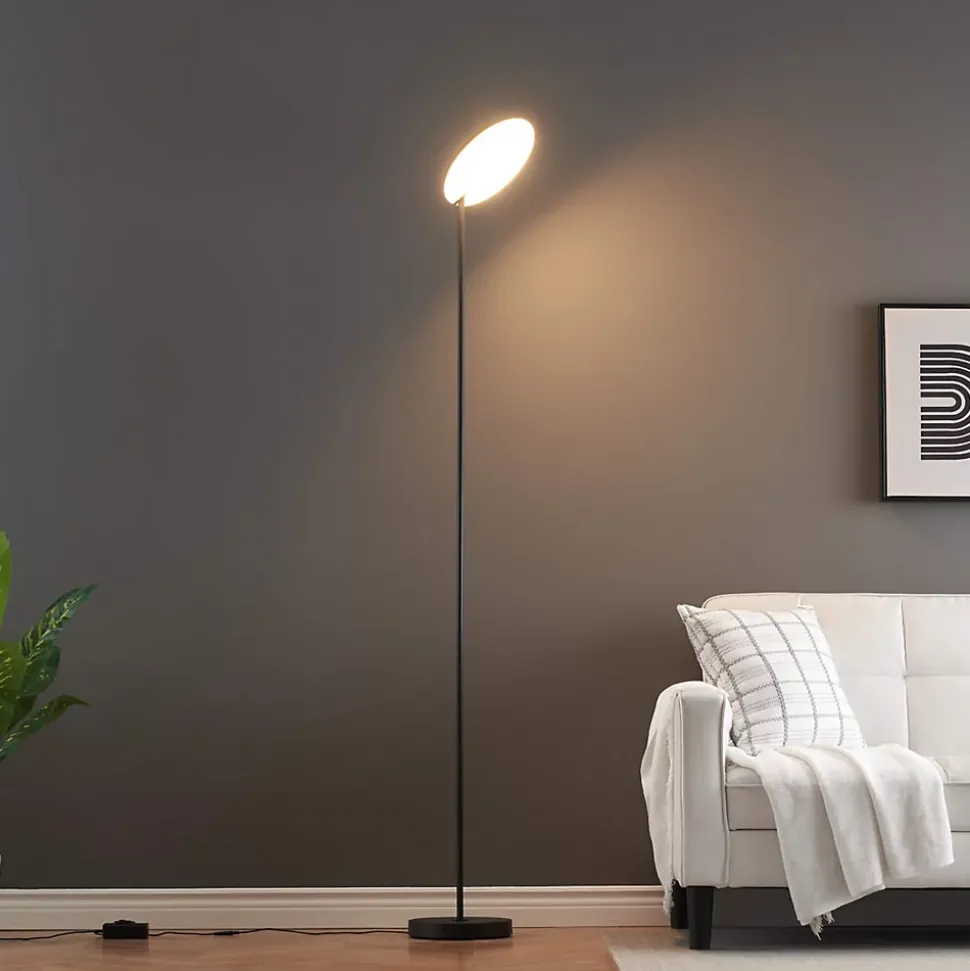 Plongez dans l’esthétique épurée du lampadaire Kalena. Avec son design entièrement noir et ses LED intégrées, il allie fonctionnalité et modernité. Doté d’un interrupteur sur câble et d’une tête pivotante à 260°, il s’adapte parfaitement à un bureau ou à un coin lecture dans le salon. Fabriqué en aluminium avec un socle rond pour une stabilité optimale, ce luminaire offre un éclairage blanc chaud de 3000K, idéal pour créer une atmosphère accueillante et confortable.) Assemblage simple requis (