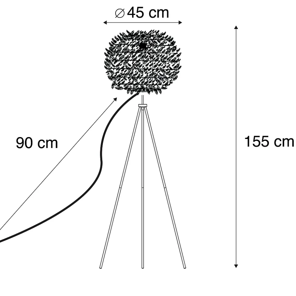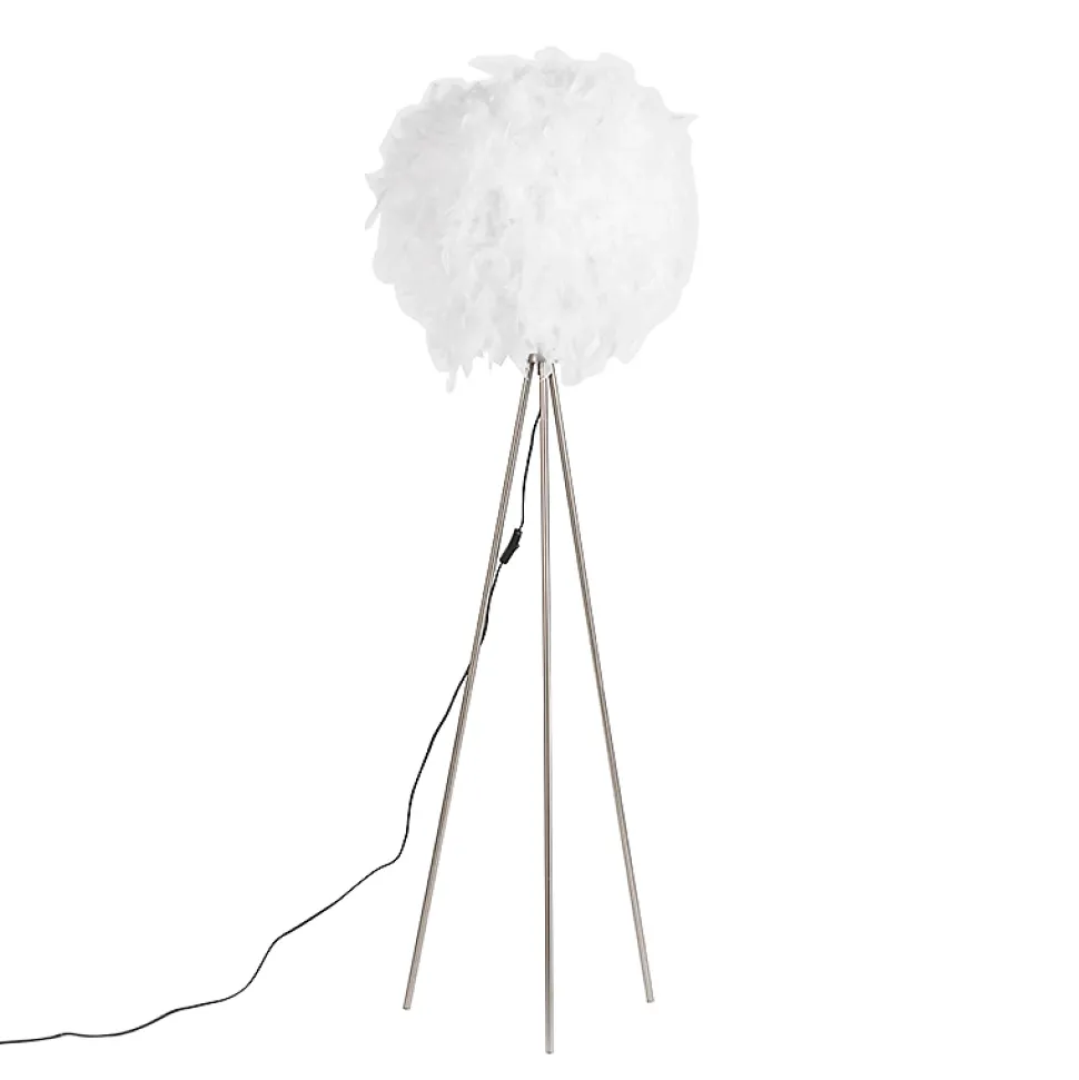 Avec ce lampadaire saisissant décoré de plumes, vous aurez immédiatement un bel élément de décoration dans votre maison ! Cette lampe crée déjà une ambiance même lorsqu’elle n’est pas allumée, alors imaginez à quel point elle est magnifique lorsqu’elle émet une lumière blanche chaude ! Elle est également équipée d’un variateur d’intensité externe (non inclus). Vous pouvez la compléter avec une ampoule E27 (40W maximum). La lampe mesure 155 cm de haut. Le cordon mesure 90 cm de long. Apportez une ambiance unique à votre intérieur avec le lampadaire Feather !