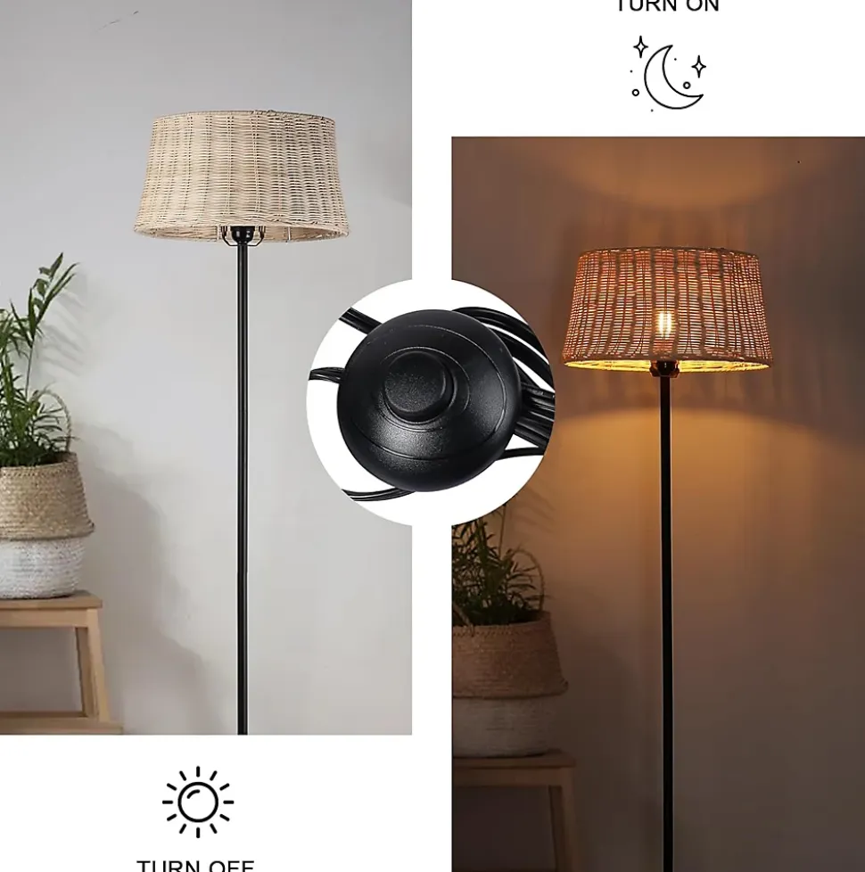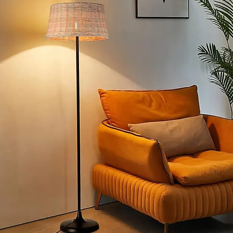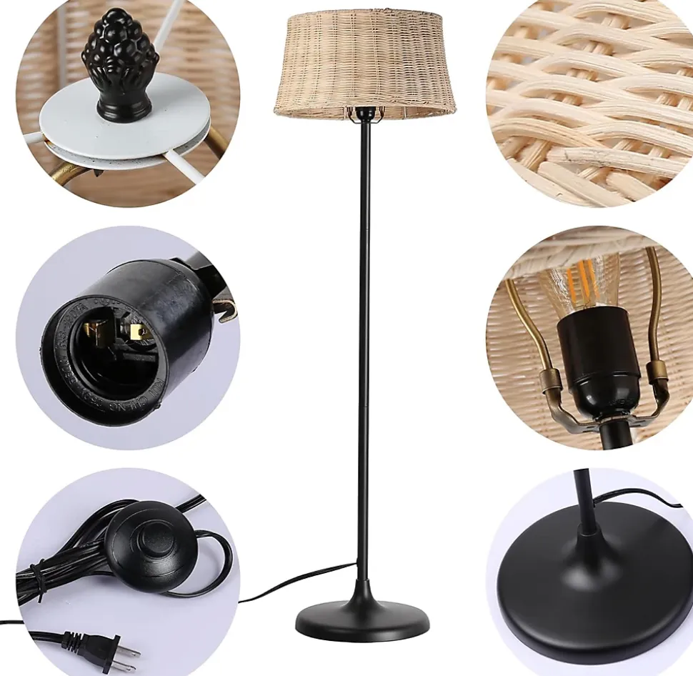 Lampadaire « Serena » – Élégance et Fonctionnalité pour votre MaisonLe lampadaire « Serena » allie un design ingénieux à des matériaux naturels pour illuminer et embellir votre espace. Sa structure présente une ligne cachée dans le mât, qui non seulement ajoute une touche de sophistication, mais cache également les câbles d’alimentation, garantissant un aspect propre et sécurisé.Caractéristiques Principales :Écran en Rotin : Avec un diamètre de 28 cm, son écran en rotin apporte une touche rustique et chaleureuse, créant une atmosphère accueillante dans n’importe quel environnement.Hauteur Imposante : Avec ses 147 cm de hauteur, « Serena » devient un point central qui attire l’attention dans n’importe quelle pièce.Éclairage Personnalisé : Nécessite une ampoule E27, vous permettant de choisir l’éclairage qui correspond le mieux à votre style et à vos besoins.Confort et Sécurité : Équipé d’une prise certifiée et d’un interrupteur au pied, il offre une expérience d’utilisation pratique et sécurisée.Le lampadaire « Serena » est le choix parfait pour ceux qui recherchent une fusion d’élégance et de fonctionnalité dans leur maison.