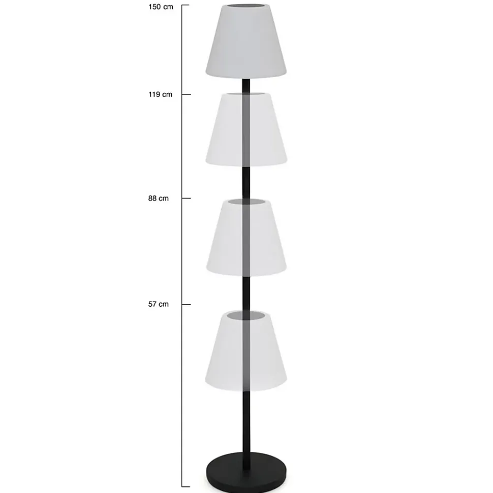 Illuminez vos nuits d’été en un tour de main grâce au lampadaire solaire extérieur avec LED et hauteur réglable ! Grâce à sa télécommande, vous pourrez choisir parmi les 7 couleurs proposées ainsi que l’intensité lumineuse variable. Vous disposez également d’un mode éclairage bougie et d’un système de changement automatique des couleurs, sur lequel vous pouvez régler la rapidité de changement (lumière fixe ou en défilement lent / rapide).Avec son système de recharge hybride, le lampadaire extérieur sans fil peut se recharger au niveau du panneau solaire installé sur le dessus de l’abat-jour mais aussi sur secteur à l’aide du câble USB. Si votre jardin est bien exposé, la lampe se chargera de manière autonome au fil de la journée. À la tombée de la nuit ou si la météo n’est pas clémente, le câble USB fourni vous permettra de la charger tout en l’utilisant. Une fois totalement chargée, la batterie de 2000mAh offre jusqu’à 20h d’autonomie !Son apparence minimaliste saura s’adapter à tous les styles de décoration, cet éclairage trouvera facilement sa place sur votre terrasse auprès de votre salon de jardin pour vos apéros tardifs ou même près de votre table de jardin pour éviter de finir le repas dans le noir. Il pourrait même s’accorder parfaitement à l’intérieur comme lampe déco dans votre salon par exemple.Profitez de 4 hauteurs réglables (57 – 88 – 119 – 150 cm) pour s’adapter aisément à tous vos besoins. Son pied élancé en métal noir et son abat-jour en polyéthylène blanc font de ce lampadaire nomade un éclairage extérieur très tendance et épuré qui plaira à tous les coups !Alors n’hésitez plus et craquez pour ce lampadaire sans fil solaire qui viendra sublimer votre extérieur à prix mini !Nous vous conseillons de le nettoyer avec un chiffon humide et d’éviter l’utilisation de produits chimiques. Bien qu’il soit adapté à un usage extérieur, nous vous recommandons de le protéger des phénomènes météorologiques.Dimensions du lampadaire solaire LED à hauteur réglableDi