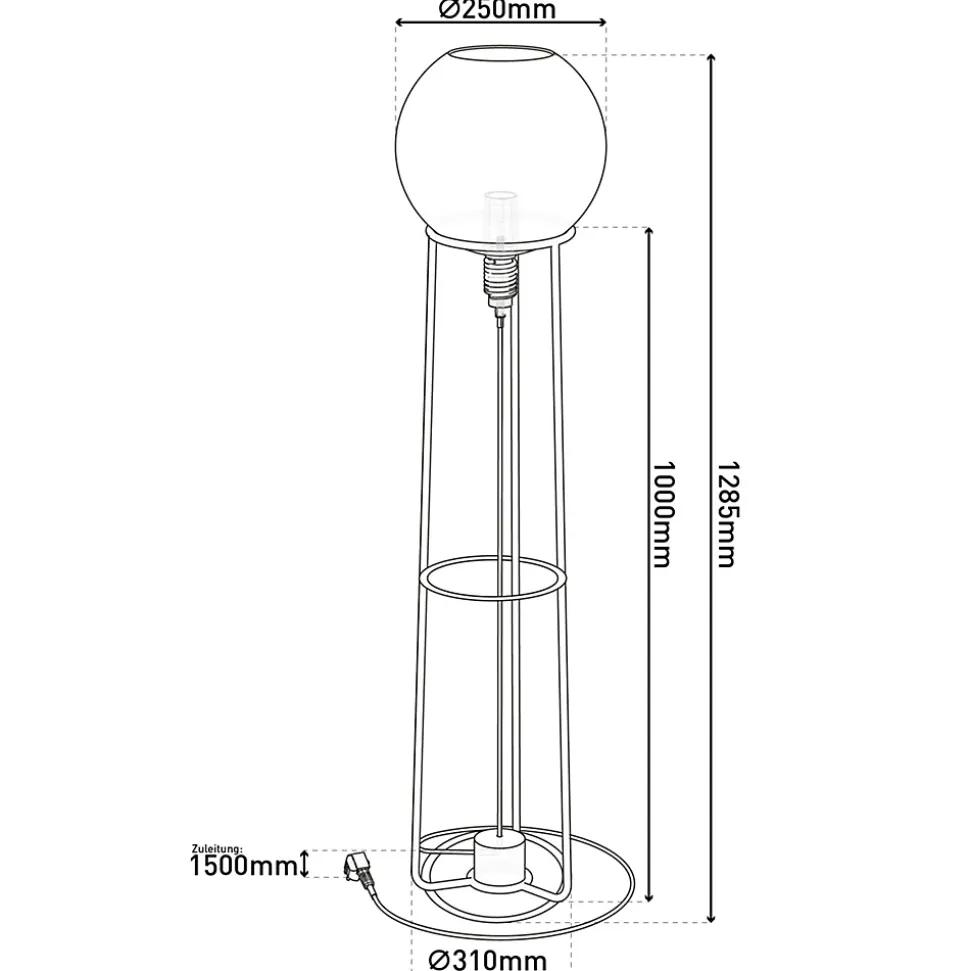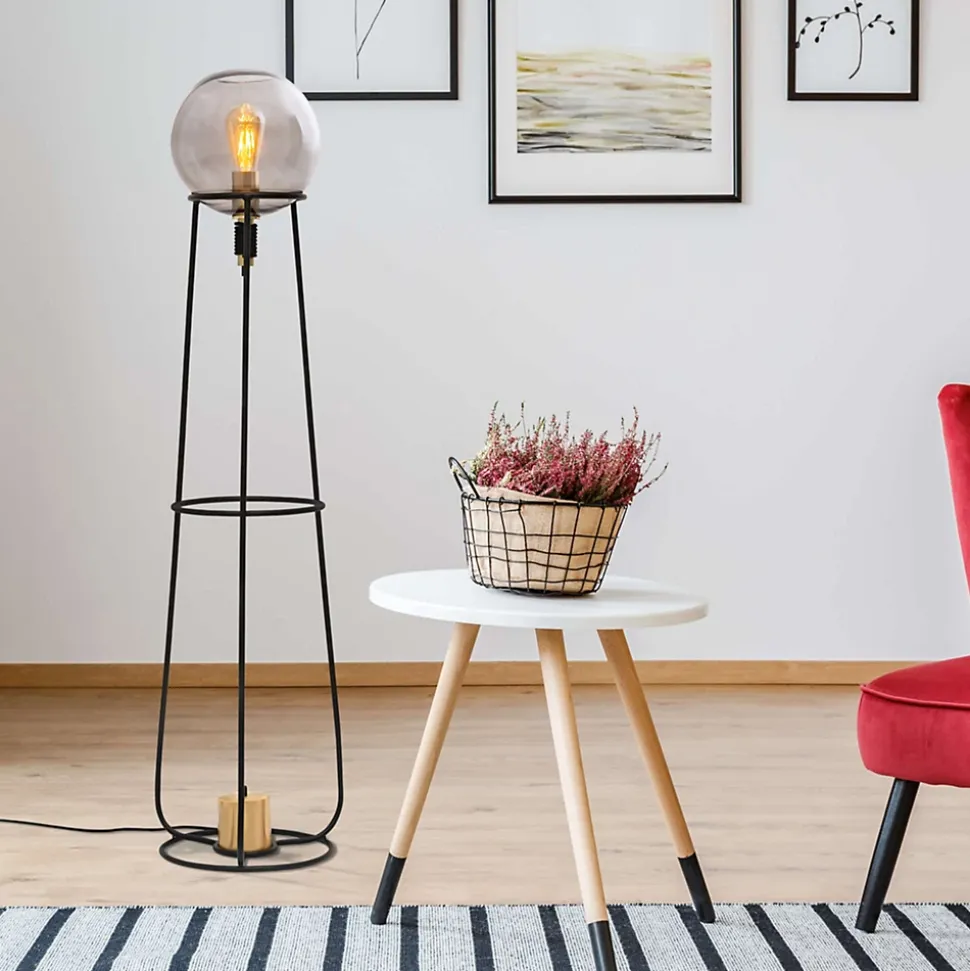 Donnez à votre intérieur ce petit quelque chose en plus avec le lampadaire STELO. Un lampadaire complète joliment l’aménagement de votre pièce et crée une atmosphère confortable. Il sert aussi bien de lampe de lecture pratique que d’accent élégant dans la pièce à vivre et enrichit votre intérieur de multiples façons. Avec sa forme sphérique et son design frappant, cet article de style industriel attire l’attention de tous ceux qui aiment la noblesse. Le luminaire en métal et en verre noir attire immédiatement le regard. La combinaison de la structure laquée/lasée et de l’abat-jour smokey donne un ensemble harmonieux. Les dimensions du lampadaire sont de 31 cm x 31 cm x 128,5 cm (longueur x largeur/profondeur x hauteur). Ce lampadaire est équipé d’un interrupteur à poussoir pratique et d’une fiche plate européenne. Un câble de 150 cm de long assure une marge de manœuvre suffisante. Il est de couleur noire. Ce lampadaire n’est pas seulement un point fort visuel, il ouvre également un grand choix en termes de luminosité et de température de lumière grâce à sa douille E27. Avec l’option de remplacer vous-même l’ampoule, vous êtes non seulement indépendant, mais vous ménagez aussi votre porte-monnaie. Ce luminaire correspond à la classe 2. Pour le fonctionnement sur secteur de cet appareil, une tension de secteur de 220-240V ~ 50Hz est nécessaire. Le luminaire dispose d’une puissance totale de 40 watts. Avec notre lampadaire, vous conférez à votre intérieur l’ambiance lumineuse parfaite et créez une atmosphère attrayante.