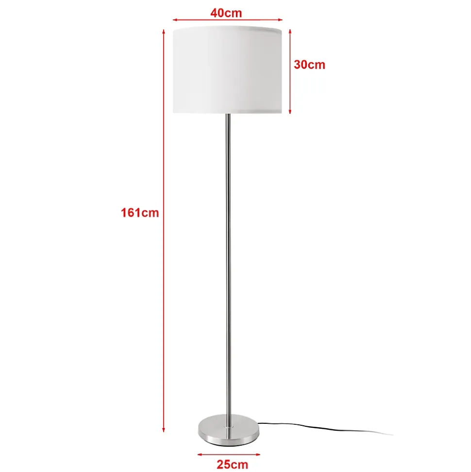 - Caractéristiques : – douille : 1 x E27, max. 60W (livraison sans ampoule) – alimentation : 230V, 50Hz – type d’interrupteur : sur câble Dimensions : – hauteur totale : 161 cm – abat-jour (hauteur x largeur) : 30 x 40 cm – diamètre du socle : 25 cm – longueur du câble : 180 cm