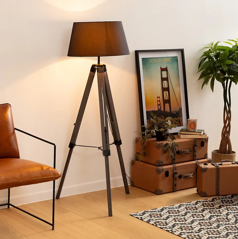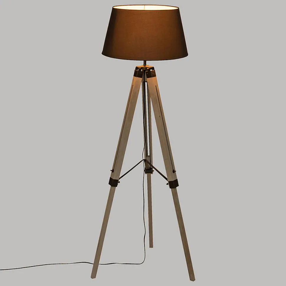 Tel un appareil photo vintage prêt à immortaliser le paysage, le lampadaire trépied « Runo » Atmosphera va vous faire craquer… Lumière diffuseHaut sur pattes, avec un abat-jour empire large et évasé, le lampadaire 3 pieds « Runo » diffuse largement la lumière. Avec la tendance du style industriel, sa ligne fuselée élégante est devenue un must-have de l’éclairage intérieur, bien qu’il nécessite plus d’espace au sol.Un style urbain actuelLes pieds trépieds de ce lampadaire sont en bois massif, pour une double inspiration industrielle et scandinave. Style urbain, vintage ou industriel, ce modèle deviendra l’élément central du salon ou du bureau.Associez le lampadaire trépied « Runo » à un confortable fauteuil club ou contemporain Atmosphera accompagné de meubles en bois et métal.Le petit plus décoDans un bureau, profitez de sa présence inspirante pour mettre en lumière quelques souvenirs de voyage.