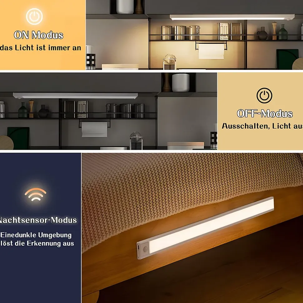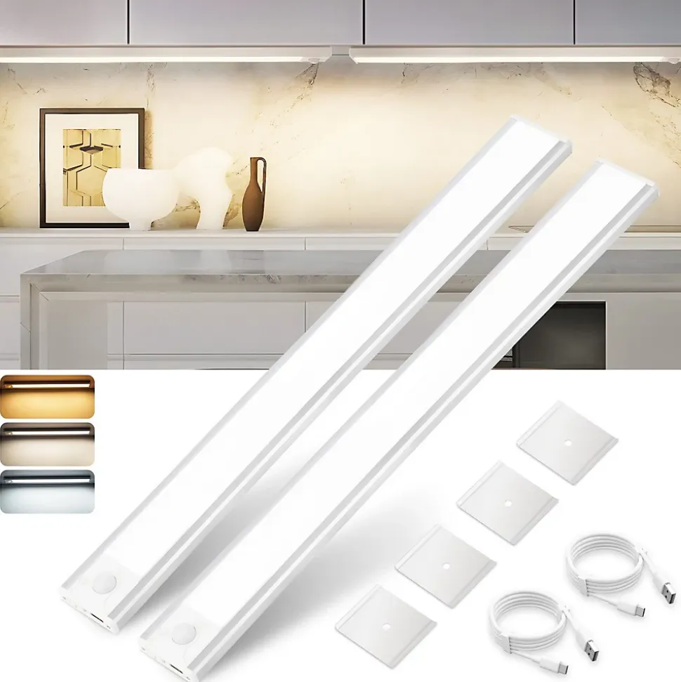 Lampe 2 x LED sous meuble NETTLIFE avec détecteur de mouvement, rechargeable par USB, 1500 mAh, un couloir ou un placard