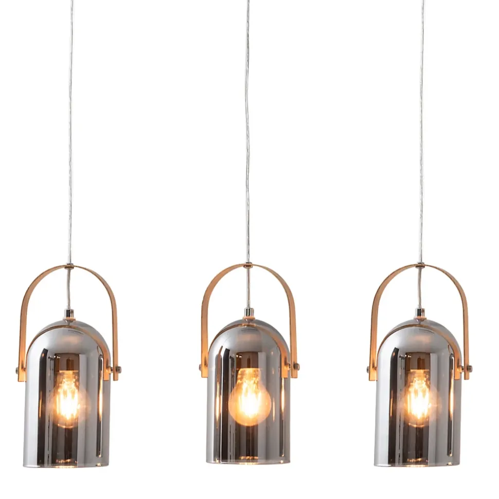 Les luminaires suspendus de notre collection VIDRIO – Un point fort pour votre intérieur Les luminaires suspendus offrent un éclairage direct et focalisé, idéal pour éclairer les tables de salle à manger, les îlots de cuisine, les zones de travail ou tout espace nécessitant une lumière ciblée. Elles mettent visuellement en valeur certaines zones et créent une source de lumière claire pour les activités. Un aspect gracieux et une forme symétrique font de ce luminaire de style rétro un must pour tous ceux qui aiment les intérieurs cohérents. Avec son design en métal et en verre argenté, ce luminaire attire particulièrement l’attention. La suspension mesure 11,5 cm de diamètre et 141 cm de hauteur. La longueur totale de la suspension est de 109 cm. Cette suspension est la solution parfaite pour votre éclairage intérieur. Grâce à la possibilité de changer vous-même l’ampoule, vous êtes non seulement indépendant, mais vous économisez aussi de l’argent. Ce luminaire est conforme à la classe 1 Cet appareil est conçu pour être utilisé sur le réseau électrique et fonctionne avec une tension de réseau de 220-240V ~ 50Hz. Le luminaire dispose d’une puissance totale de 120 watts. Avec notre luminaire suspendu exclusif, vous créez la lumière optimale pour chaque humeur et ajoutez une touche de luxe et d’élégance à votre intérieur.