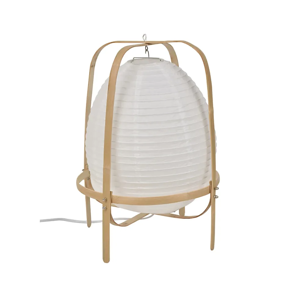 Lampe forme lanterne en papier japonais et structure en bambou.