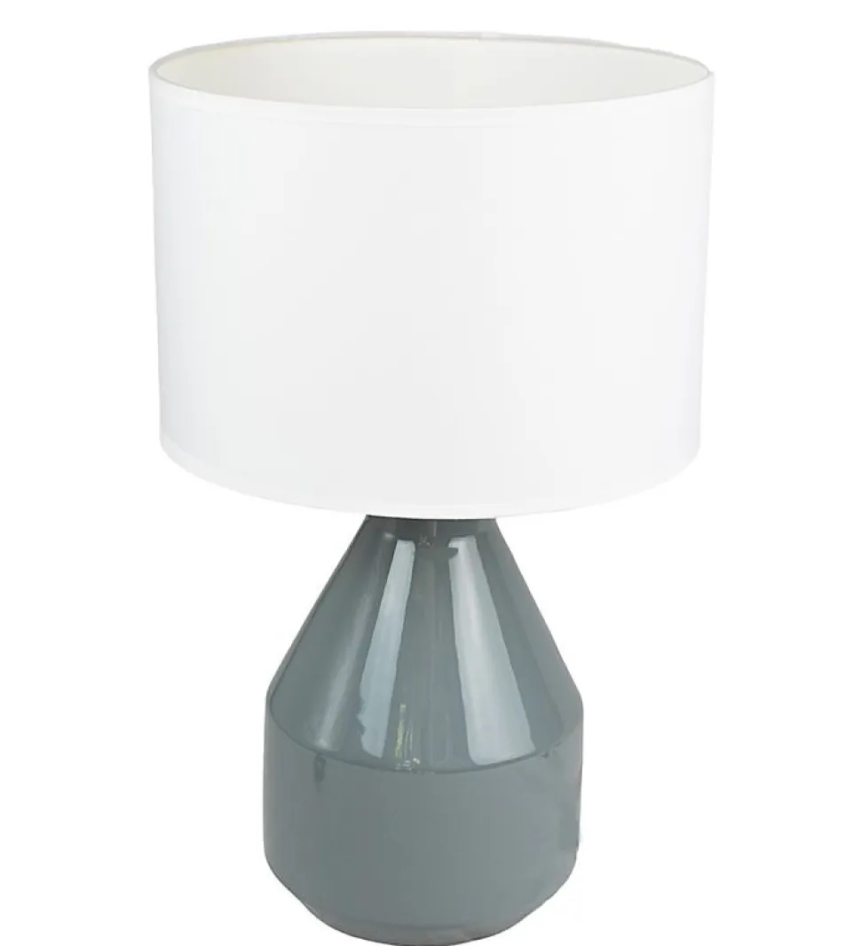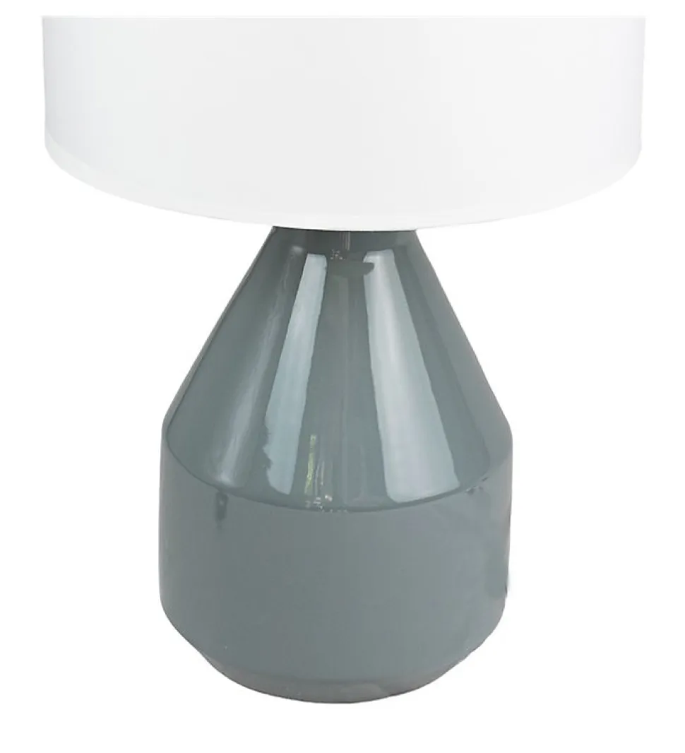Lampe à poser, pied en céramique gris anthracite et abat-jour tissu blancCompatible ampoules LED (Ampoule basse consommation fournie)Descriptif :Couleur : Pied Anthracite et Abat-jour blancMatériau : Pied en céramique, Abat-jour en tissuUsages spécifiques : Usage intérieur uniquementDiamètre abat-jour : 28 cmHauteur Abat-jour : 19 cmHauteur totale (socle et abat-jour) : 45 cmCaractéristiques techniques :Type d’ampoule compatible : LED, Halogène, Fluo compacteType de culot : E27Puissance : 60 WattsAmpoule incluse : OuiVolt : 230Branchement : prise secteurType d’interrupteur : Bouton basculeOptez pour cette lampe à poser en céramique dont le design sobre mais élégant s’adaptera à tous les styles d’intérieur.D’une hauteur total de 45 cm, cette lampe à poser conviendra à la décoration de votre salon ou de votre chambre comme lampe de chevet.L’utilisation d’un luminaire adapté aux ampoules LED vous permettra de réaliser des économies d’énergie