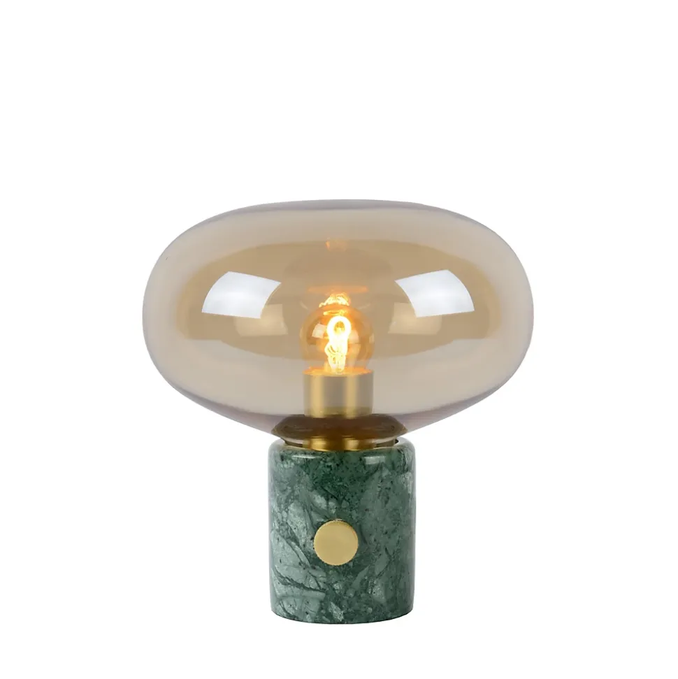 Lampe à poser Charlize pied en marbre vert, abat-jour en verre IP20 E27 40W Ø23 x H.24cm Lucide