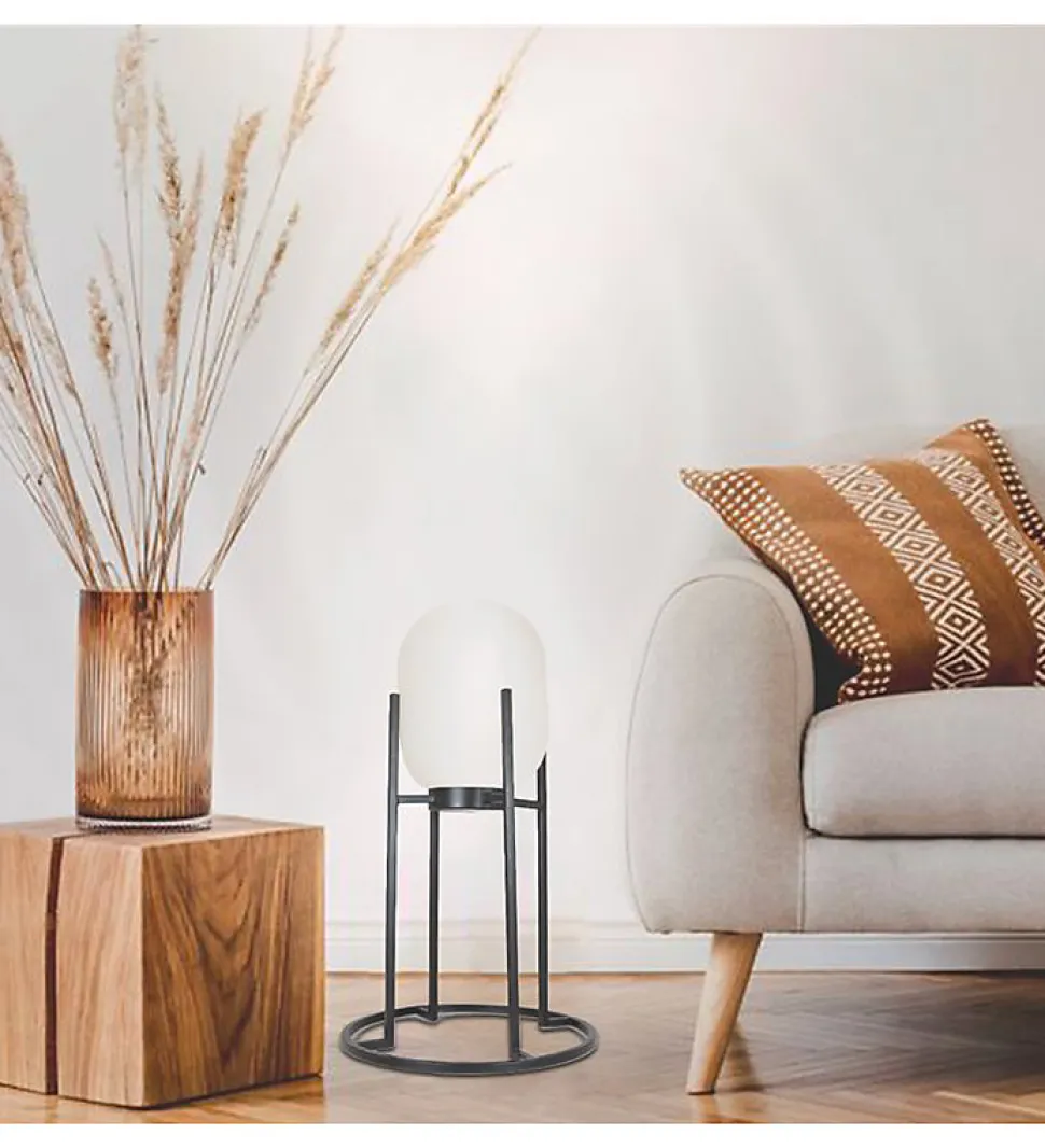 Lampe déco en métal noir E27 / 60. W max (non fournie)Optez pour cette lampe décorative aux allures de lanternes japonaises pour une touche orientale à votre intérieur !DESCRIPTIF :- Type de produit : Lampe à poser- Matériau : Métal et verre- Finition : Noir et opale- Usage : IntérieurCARACTERISTIQUES TECHNIQUES : – Dimensions : H : 40 cm – L : 30 cm- Compatible Ampoules : LED, Halogène, basse consommation- Culot : E27- Nombre d’ampoule : 1 (non fournie)- Puissance : 40 Watts max. – Interrupteur : Oui- Voltage : 230. VCE QUE NOUS AIMONS : Cette lampe à poser ravira les fans de déco avec son design épuré.Constituée d’une structure en métal noir et d’une lanterne en verre, ce luminaire ramène un peu du japon chez vous.Cette lampe possède également un interrupteur pour une mise hors tension rapide.Préférez l’utilisation d’ampoules LED avec cette lampe en bois naturel pour des économies d’énergies .
