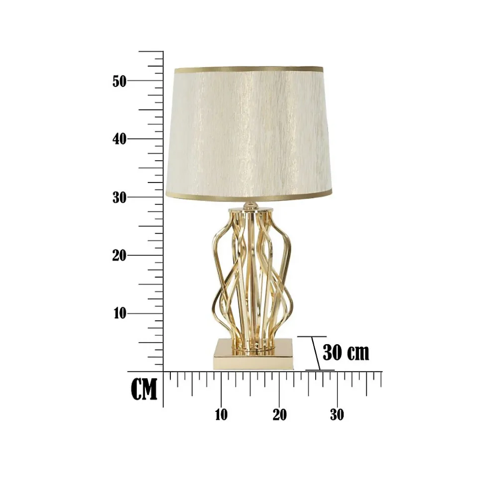 Informations Techniques :Dimensions : L. 30 x l. 30 x H. 52 cmMatières : Métal, Plastique & PolyesterSpécificités :Chic & UtileLampe de table bicoloreBase designAmpoule non incluseDouille : E27Puissance : 40 WVoltage : 220 VFréquence : 50 HzPoids : 2 kgCouleur : Or & Crème
