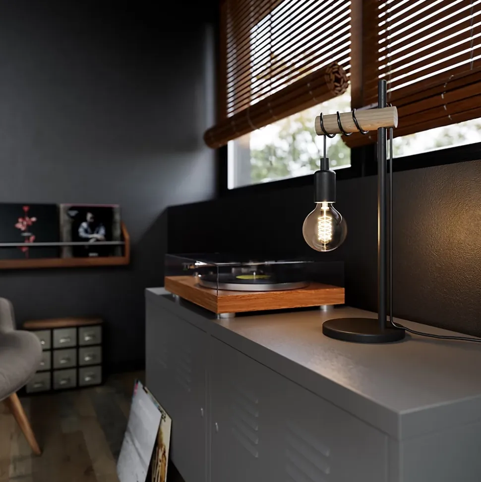 Lampe à poser effet bois et métal noir E27 Ø15.7cm x H.49 cm 42W GoodHome Hornero