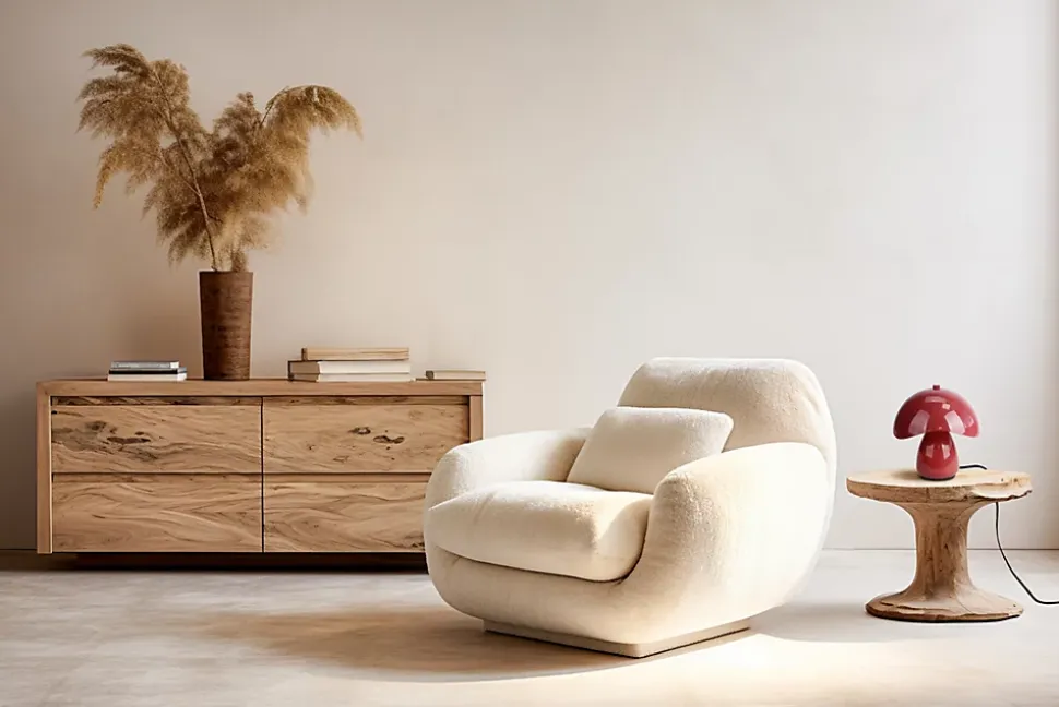 - Avec ses lignes arrondies et sa teinte Burnt Russet, elle évoque l’esthétique des années 60