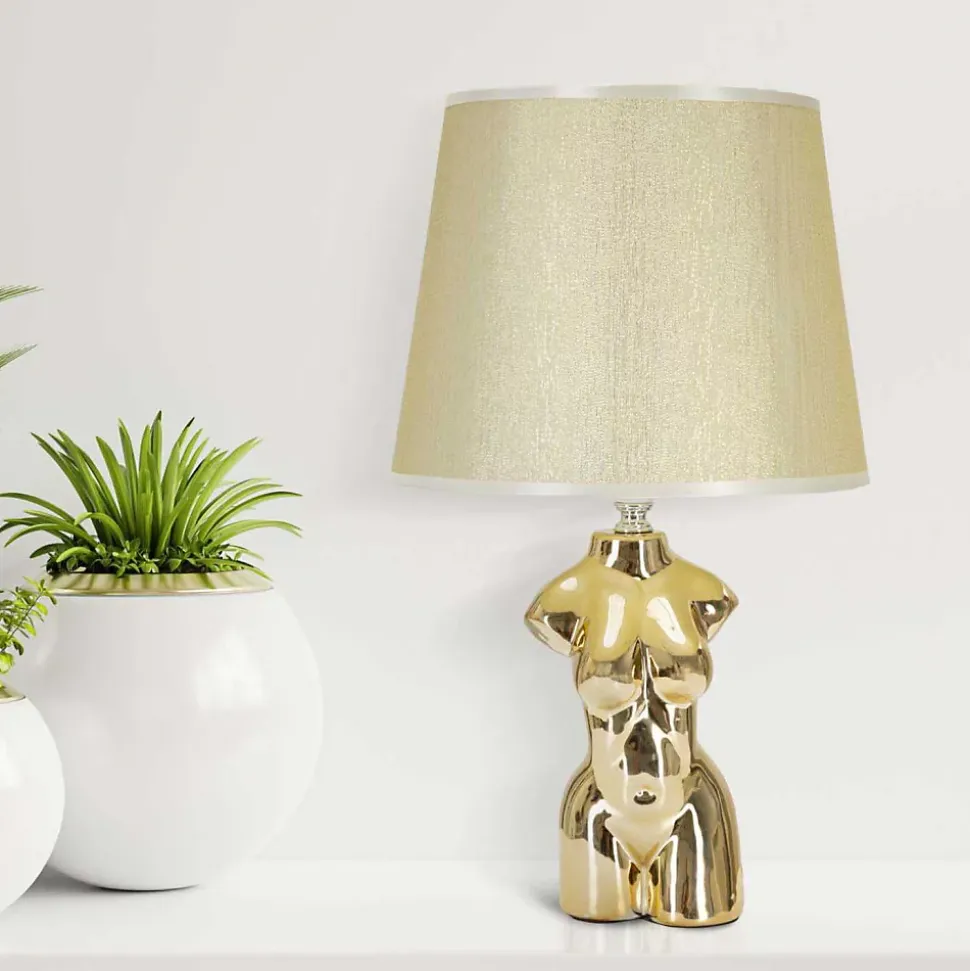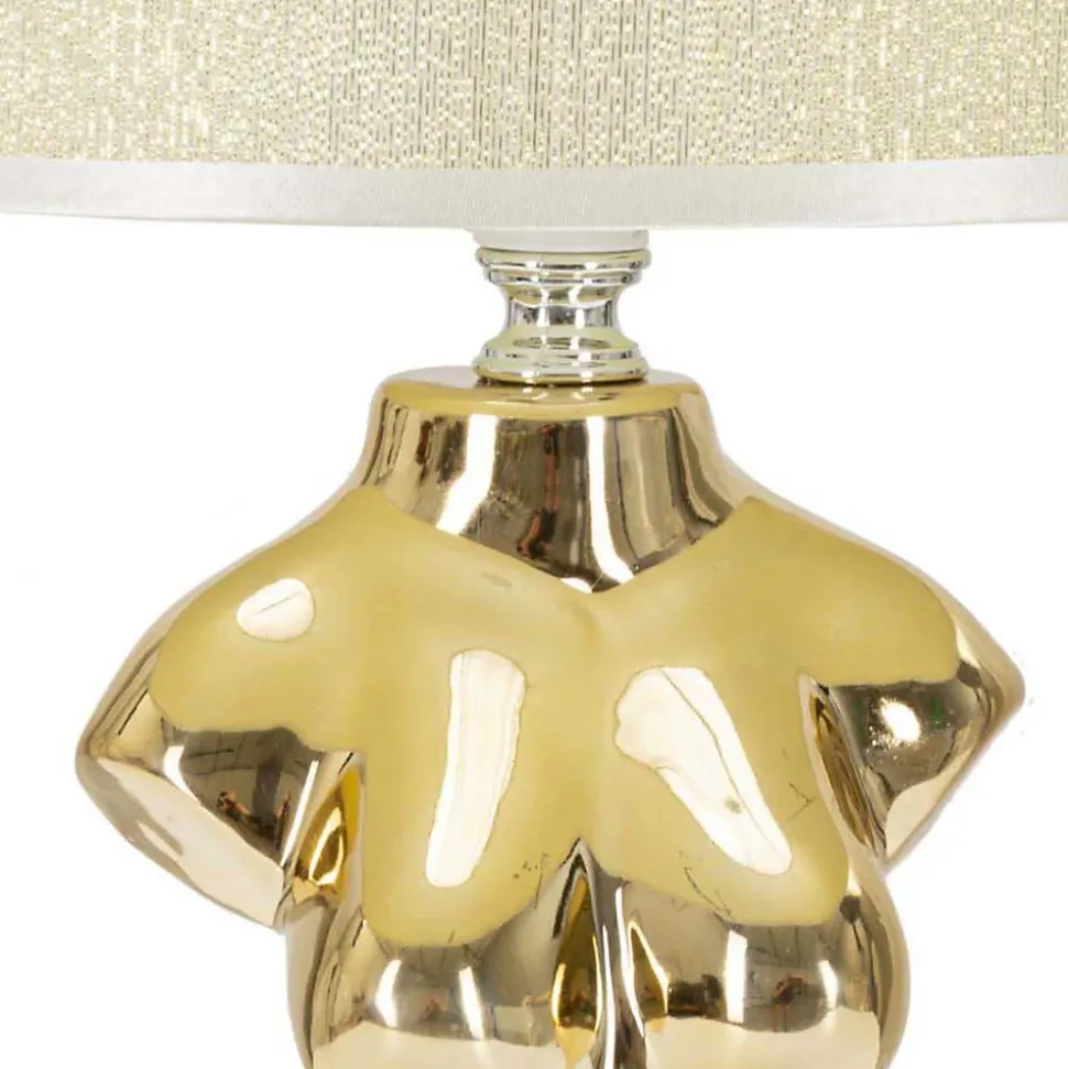 Aspect : Coloris = Doré • Matériau principal = Céramique • Matériaux secondaires = Métal Tissu • Autres dimensions : Dimensions de l’abat-jour = 25 x 20 cm (DxH) • Dimensions : Hauteur (en cm) = 42,50 • Longueur (en cm) = 25 • Profondeur (en cm) = 25 • Autres caractéristiques : Informations complémentaires = Ampoule compatible E27 non fournie • Poids (en kg) = 1 • Lampe à poser en céramique Buste glam