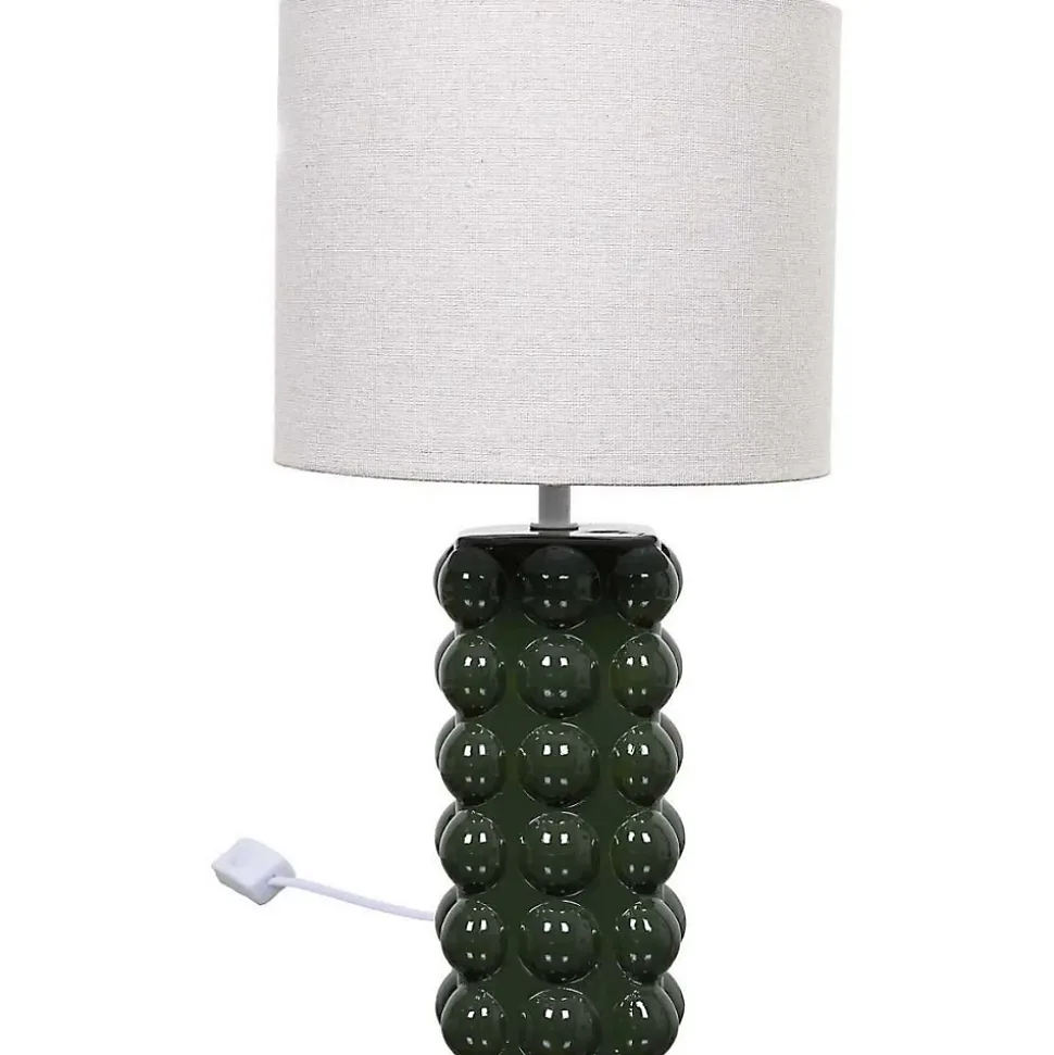 Aspect : Coloris = Vert • Matériau principal = Dolomite • Matériaux secondaires = Lin Acier • Dimensions : Hauteur (en cm) = 40 • Longueur (en cm) = 22 • Profondeur (en cm) = 22 • Autres caractéristiques : Informations complémentaires = Ampoule compatible E27 40W max (non fournie) , Alimentation prise secteur , Longueur de câble : 1.20 m • Poids (en kg) = 0,16 • Lampe à poser en céramique Foret