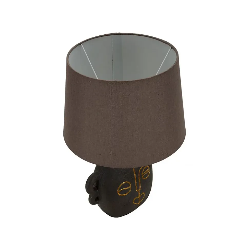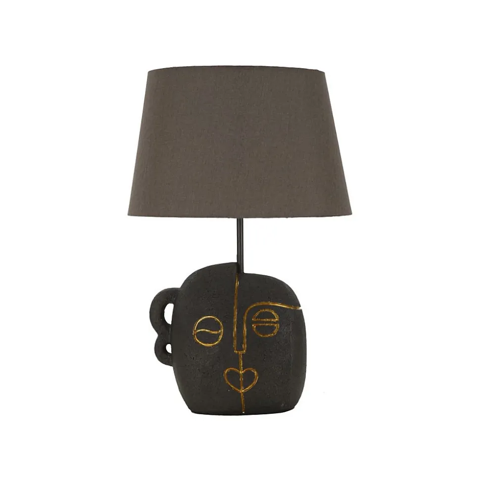 Informations Techniques :Dimensions : L. 30,5 x l. 30,5 x H. 46 cmMatières : Polyrésine, Métal & TissuSpécificités :Originale & UtileLampe de table décoBase motif visage tribalAbat-jour en tissuAmpoule non incluseDouille : E27Puissance : 40 WVoltage : 220 VFréquence : 50 HzPoids : 1,6 kgCouleur : Marron & Or