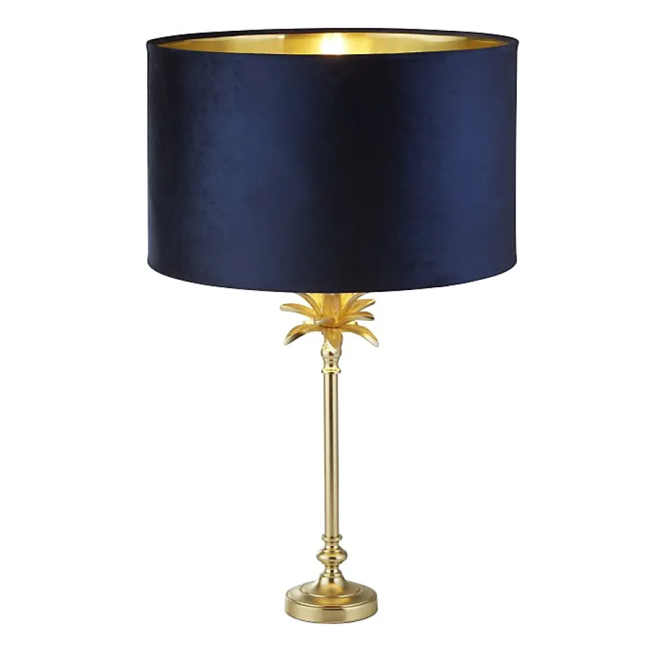 Lampe à poser laiton satine et abatjour velour Marine, Doré Interieur E27 max 60w Haut 65cm Diam 40cm PALM 1LT