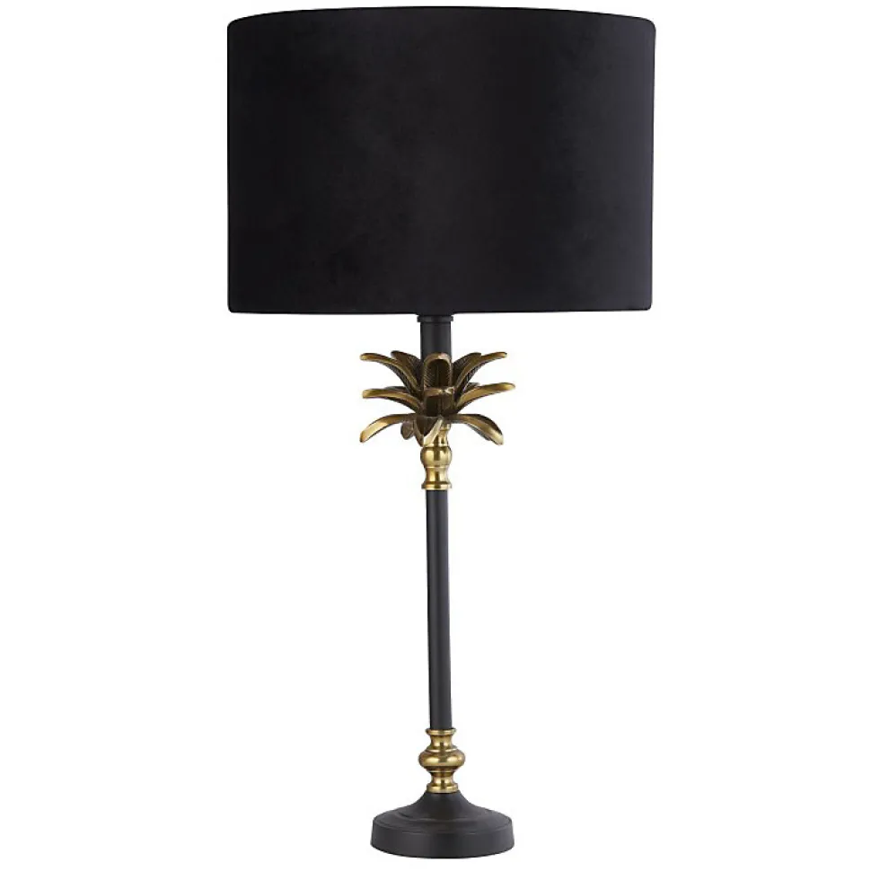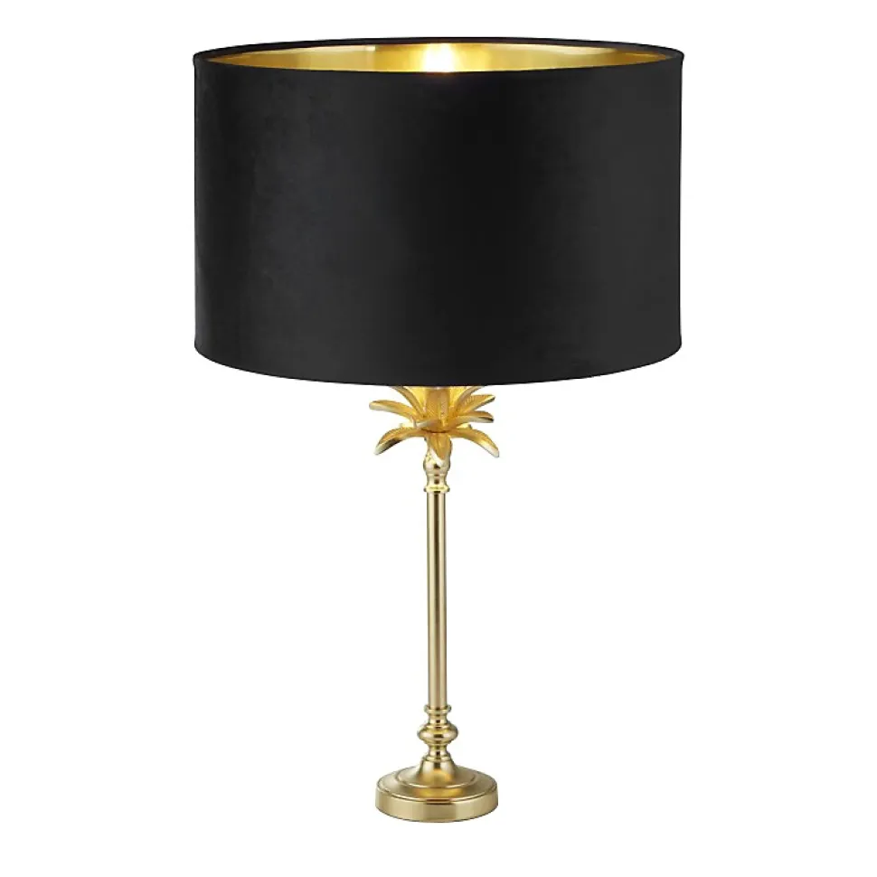 Lampe à poser laiton satine et abatjour velour Noir, Doré Interieur E27 max 60w Haut 65cm Diam 40cm
