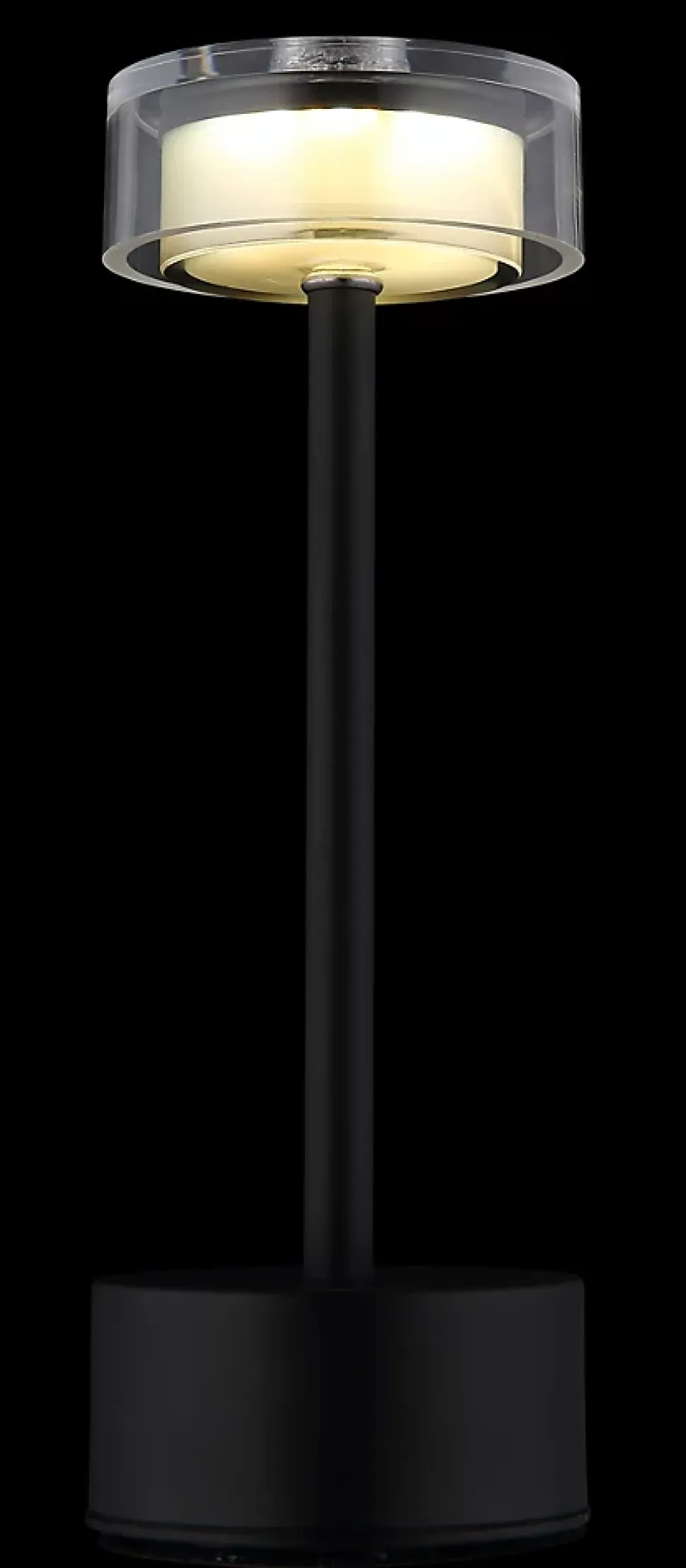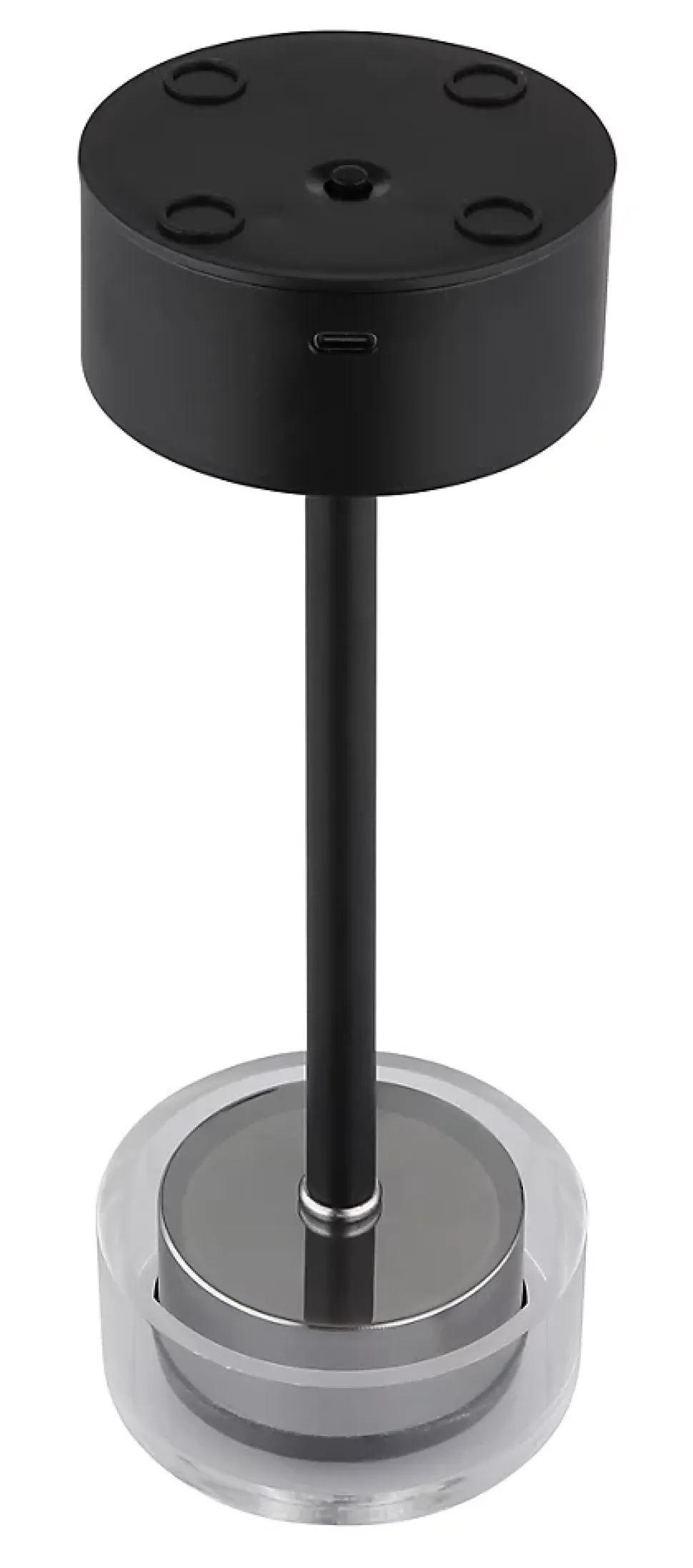 Lampe à poser métal noir mat, Acrylique translucide, Acrylique fumé, plastique opale, câble PVC Noir, Touche tactile On/Off, Dimmable, Variateur tactile en continu, couleur fixe, USB-A 2.0 – USB-C, Batterie incluse CR18650 1800mAh 3.7V, ø: 80mm, H: 235mm, Longueur du câble 500mm, incl. LED 2.5W 230V, 243lm Source, 108lm Output, CCT 2700/6500/4000K