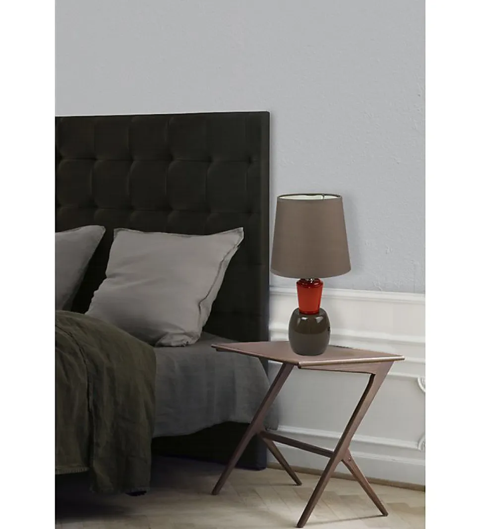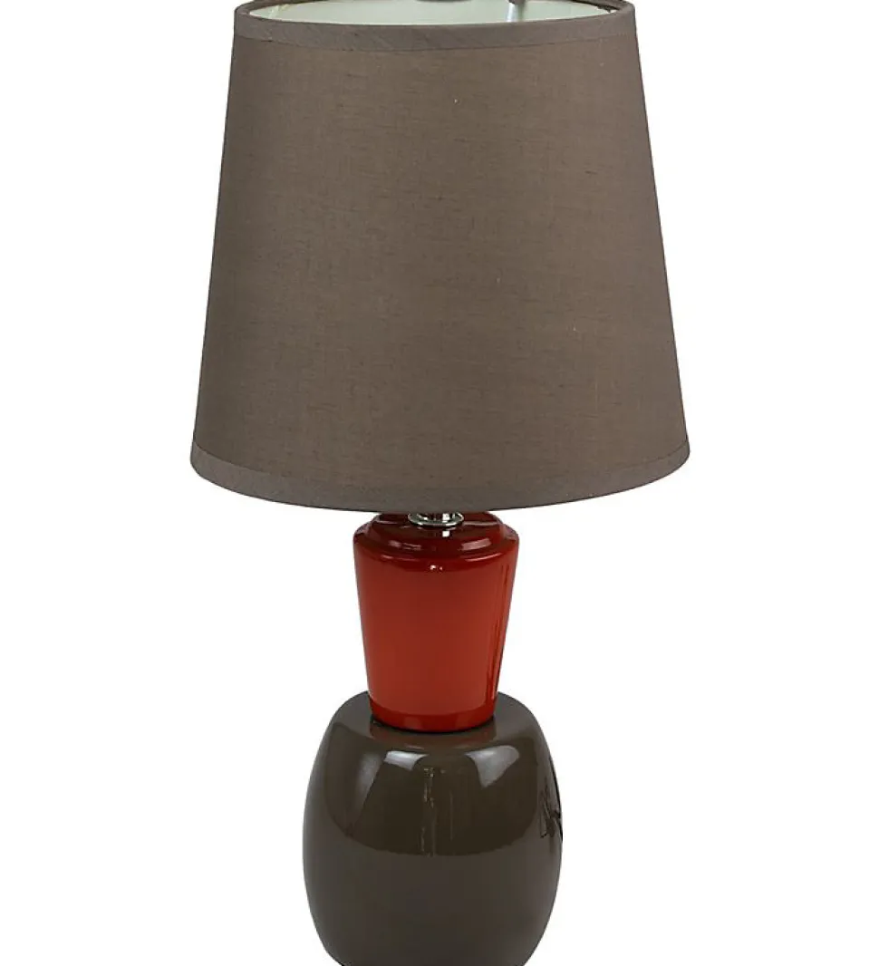 Petite lampe à poser bicolore marron et orange pied céramique brillant et abat-jour tissuCompatible ampoules LED (Ampoule basse consommation fournie)Descriptif :Couleur : marron et orangeMatériau : Pied en céramique, Abat-jour en tissuUsages spécifiques : Usage intérieur uniquementDiamètre abat-jour : 18 cmHauteur Abat-jour : 16 cmHauteur totale (socle et abat-jour) : 35 cmCaractéristiques techniques :Type d’ampoule compatible : LED, Halogène, Fluo compacteType de culot : E14Puissance : 40 WattsAmpoule incluse : OuiVolt : 230Branchement : prise secteurType d’interrupteur : Bouton basculeOptez pour cette petite lampe à poser en céramique dont le design sobre mais élégant s’adaptera à tous les styles d’intérieur.D’une hauteur total de 35 cm, cette lampe à poser conviendra à la décoration de votre salon ou de votre chambre comme lampe de chevet.L’utilisation d’un luminaire adapté aux ampoules LED vous permettra de réaliser des économies d’énergie
