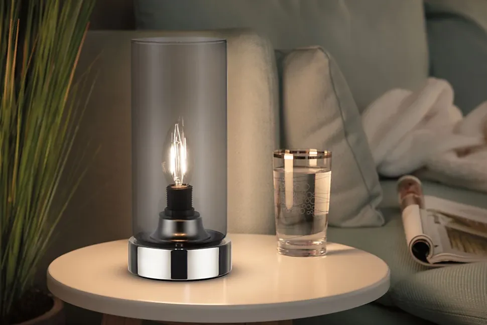 Avec son socle couleur chrome et son abat-jour en verre fumé, cette version de notre cher modèle Pinja arbore un style noble et intemporel. Elle convient à merveille pour les tables de nuit ou comme éclairage d’ambiance. Son socle tactile fait le jour et la nuit.
