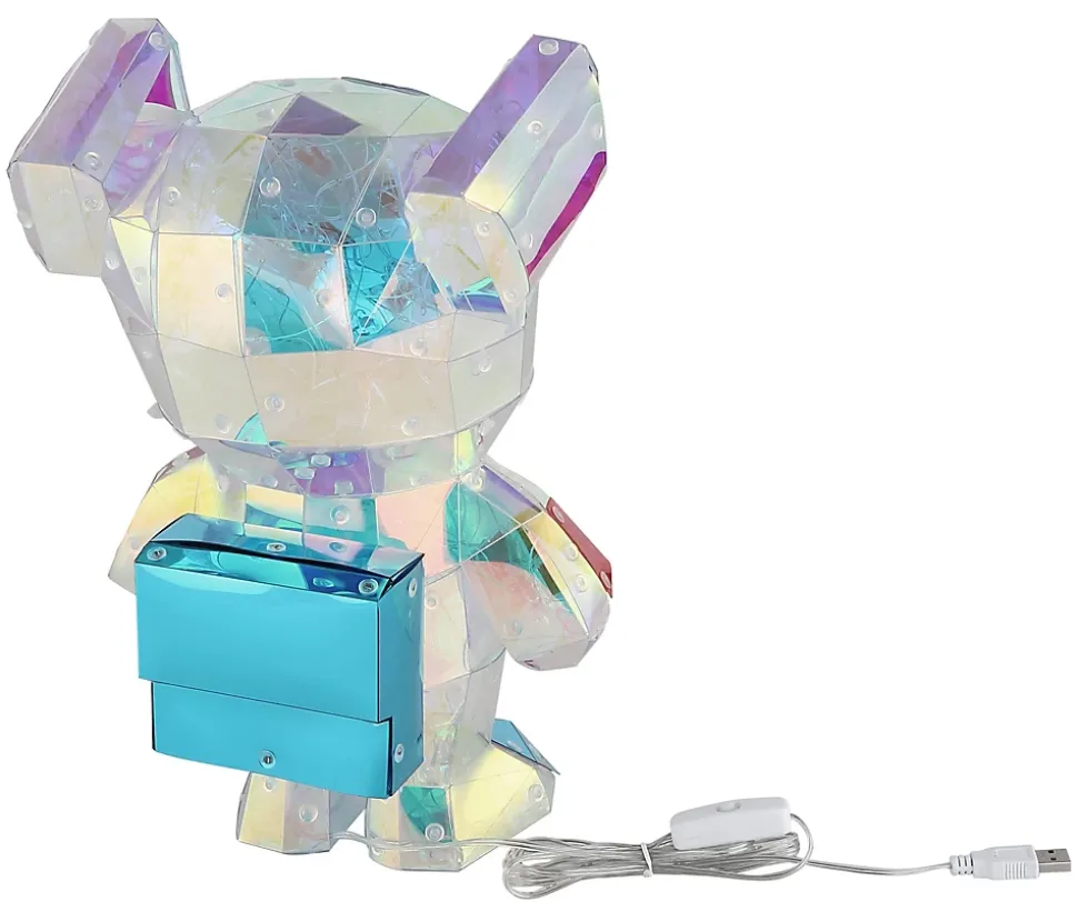 Lampe à poser plastique translucide, fumé Effet cristal, plastique rouge, bleu Effet cristal, câble PVC Blanc, Inrerrupteur à bascule sur le câble, excl. adaptateur, Câble USB incl., LxPxH: 205x165x310mm, Longueur du câble 2000mm, incl. LED 0.03W 5V, 8000K