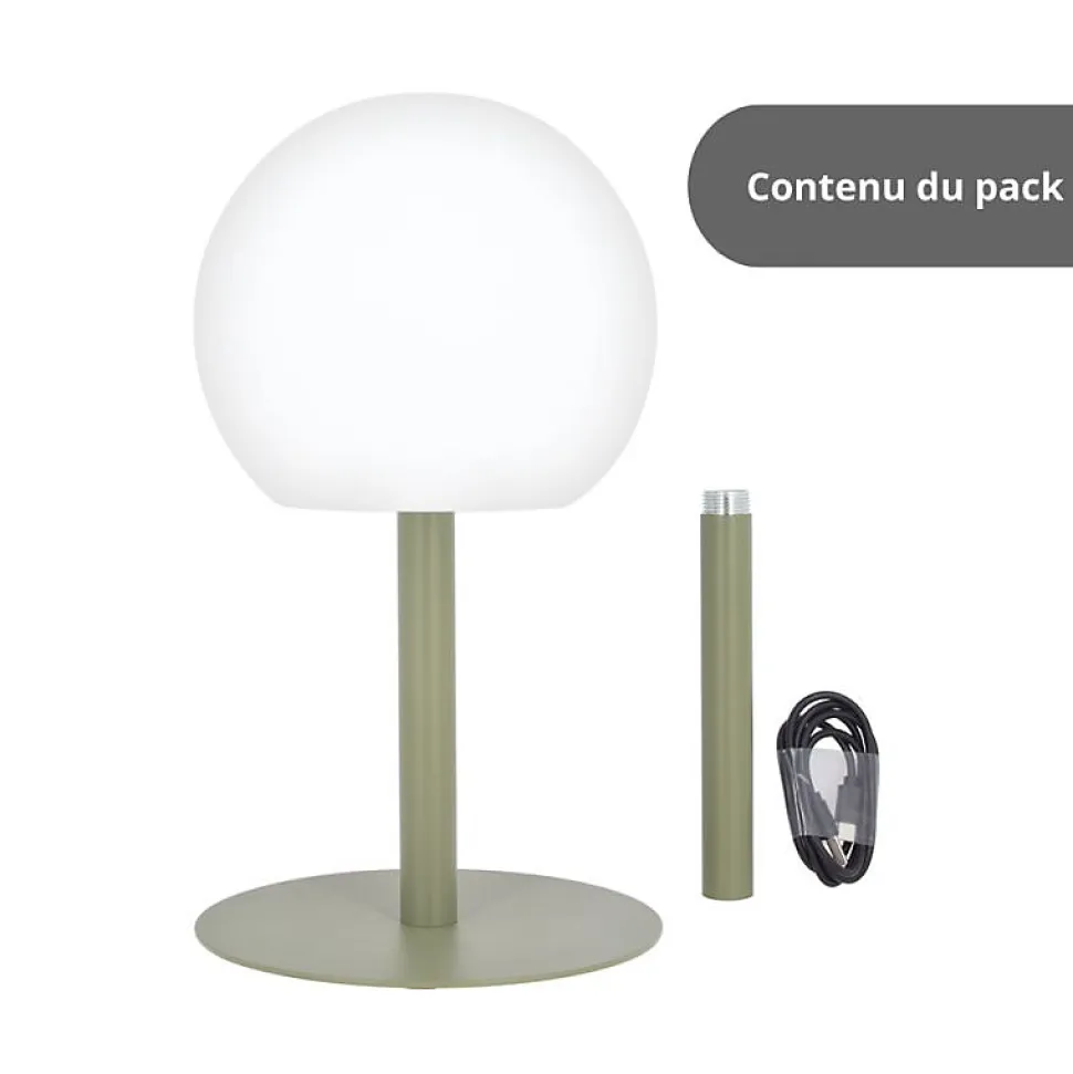 Xanlite – Lampe à poser POP – boule kaki rechargeable en métal LED IP44, 400 lumens, CCT et dimmable, hauteur ajustable – LP16BKRCCT