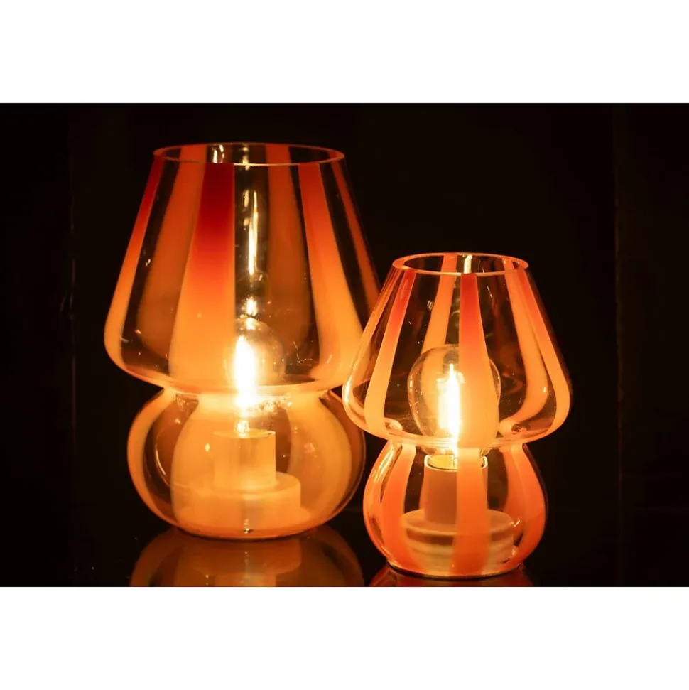 Informations Techniques :Dimensions : L. 11 x l. 11 x H. 15 cmMatières : 80% Verre & 20% PlastiqueSpécificités :Élégante & ColoréeLampe à poser designImprimé à rayuresUsage intérieur/extérieurAmpoule non incluseVendue à l’unitéDouille : E27Puissance : 40 WPoids : 0,22 kgCouleur : Orange & Transparent