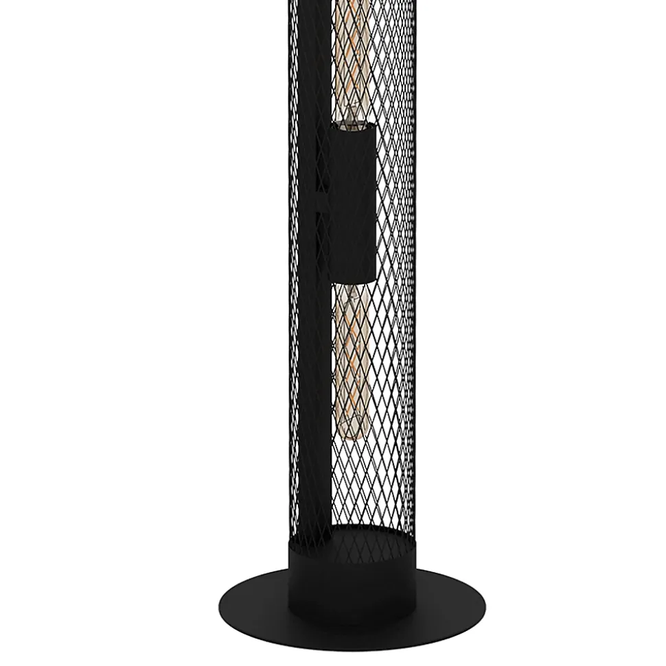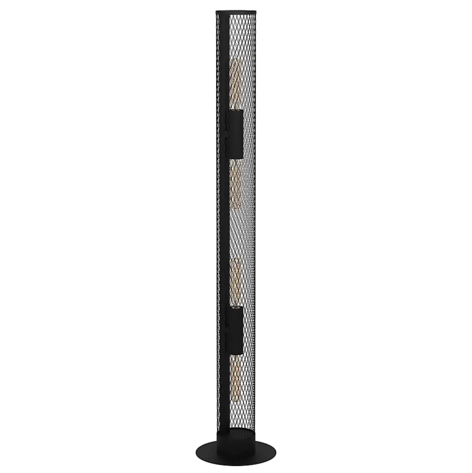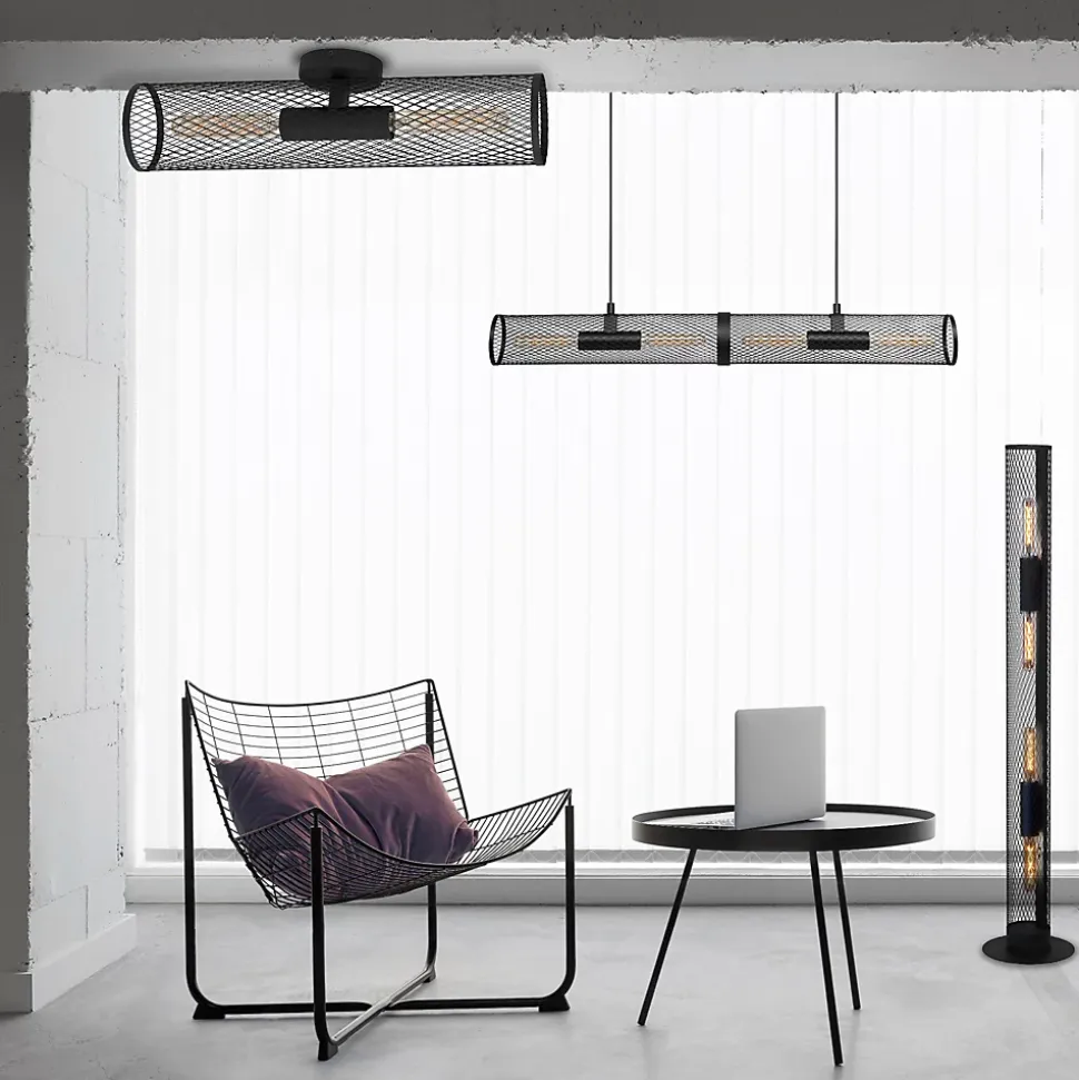 - Le lampadaire REDCLIFF se compose d’un long cylindre grillagé noir.