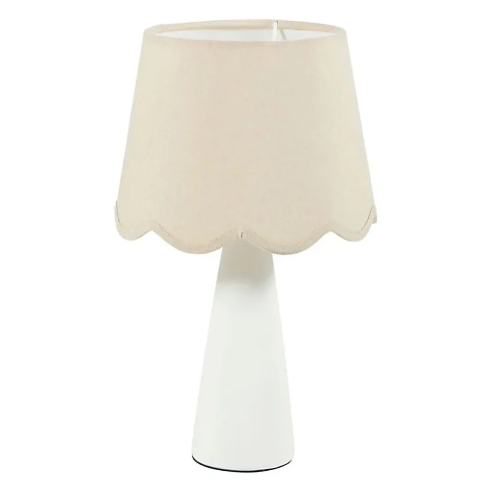 Créez une atmosphère lumineuse pratique et élégante grâce à la lampe avec pied en céramique Mathilde coloris beige et blanc. Cette jolie lampe avec sa base de forme conique en céramique apportera du renouveau à votre éclairage.Informations sur la lampe Mathilde :Composition : céramique, linDimensions : D. 20 x H. 34 cmDouille : E14 Max. 40W (ampoule non fournie)Poids : 500 g