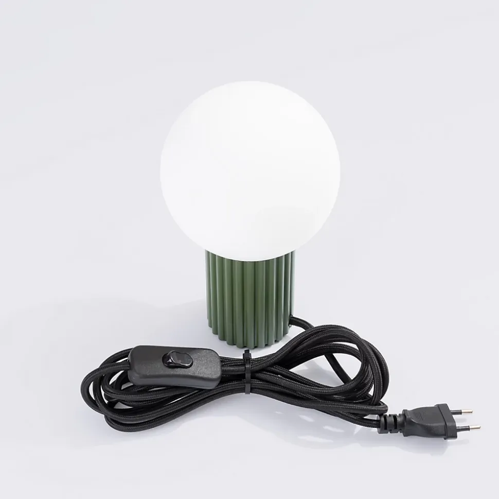 - Lampe HALO : design moderne avec corps cannelé et boule mate.