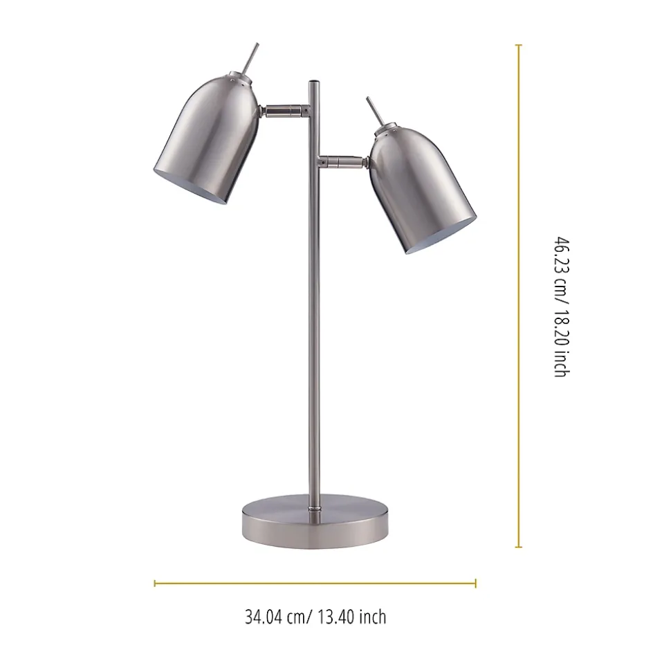 Lampe de table ajustable à double éclairage avec finition chromée, idéale pour le salon, la chambre ou le bureau. Son design moderne apporte une touche élégante à tout intérieur.