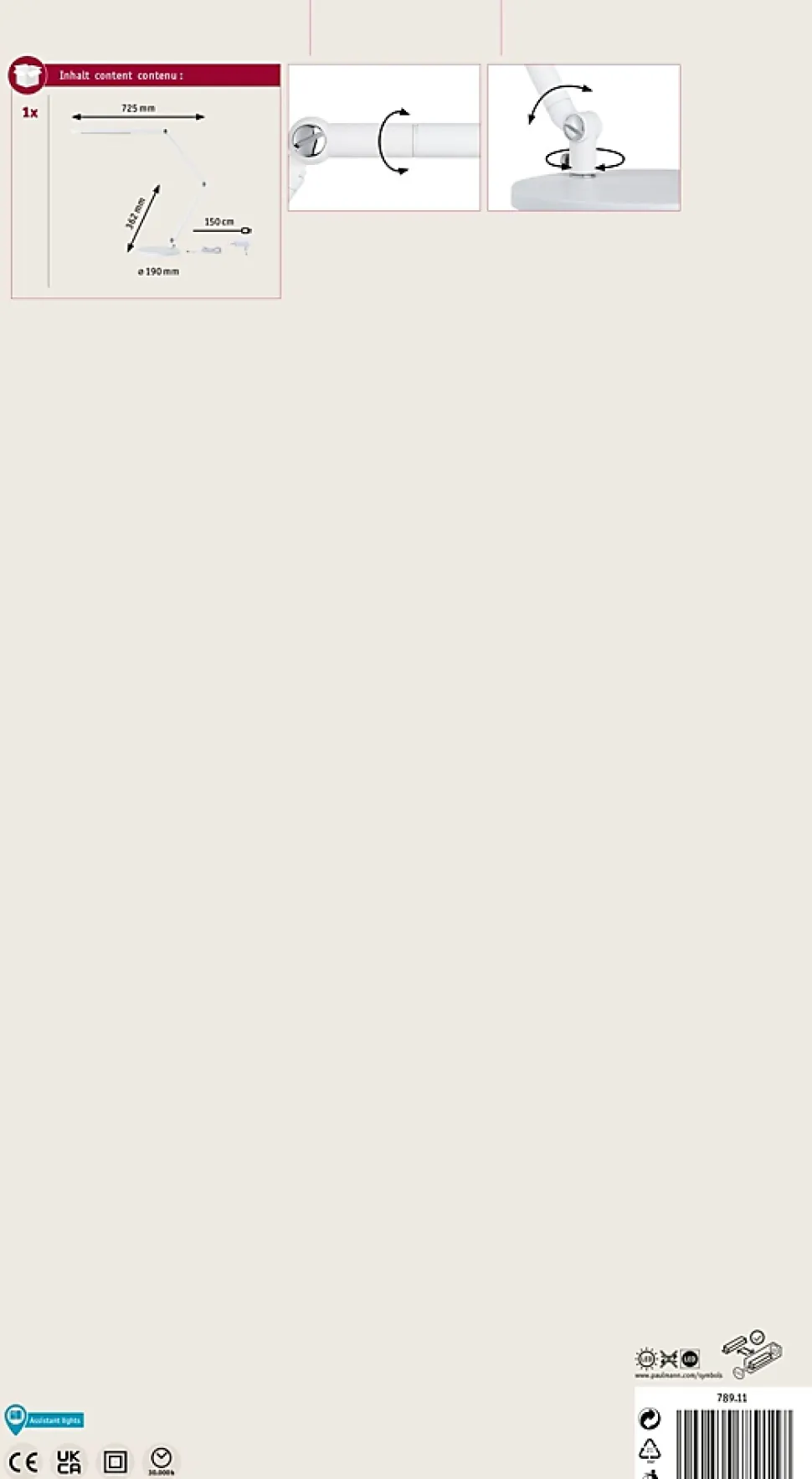 orientation simple de l’éclairage au moyen d’un bras flexible réglable|Incluant ampoule (intégrée dans luminaire)|Réglage de la lumière blanche de blanc chaud à blanc lumière du jour