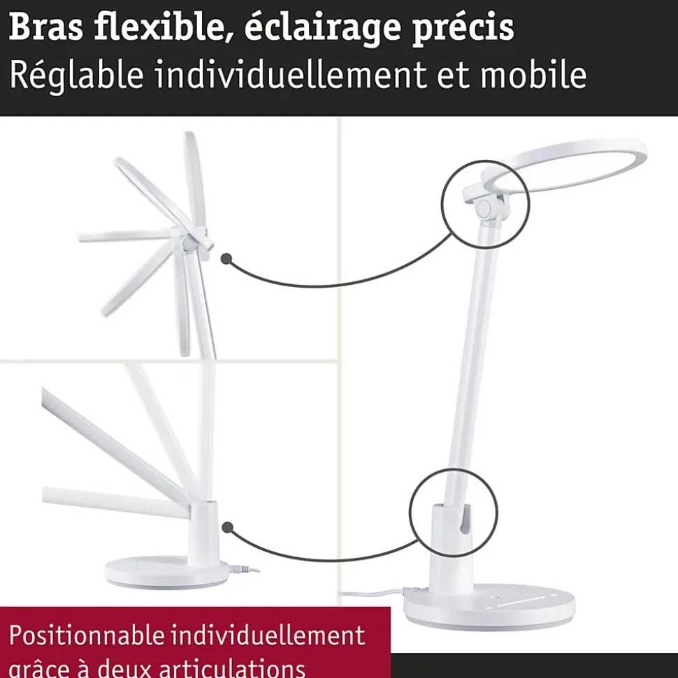 La lampe de bureau Darba, de couleur Blanc dépoli, offre une grande flexibilité et un confort maximal pour la commande d’éclairage. Grâce au capteur de lumière du jour intégré, la luminosité est automatiquement atténuée en continu pour assurer un éclairage idéal et non éblouissant en fonction de la lumière du jour. Avec une puissance de 15 watts et 800 lm, elle éclaire ainsi de grandes surfaces de travail. Grâce à la température de couleur de 4000 K, la lumière émise est d’un blanc neutre, ce qui est parfait pour se concentrer sur son travail. Grâce à un indice de rendu des couleurs élevé de plus de 90, sa couleur de feu est particulièrement naturelle. De plus, le luminaire est équipé d’une fonction de veilleuse gradable. Une combinaison de design moderne et de grande fonctionnalité assure l’harmonie de votre home office. Après une fructueuse journée de travail, vous pouvez la plier pour qu’elle prenne moins de place et se range dans un tiroir. La lampe de bureau est idéale pour tous ceux qui souhaitent éclairer leur poste de travail de la meilleure façon possible tout en l’améliorant esthétiquement. Outre le luminaire, un câble pratique de 1,50 m est inclus dans la livraison.