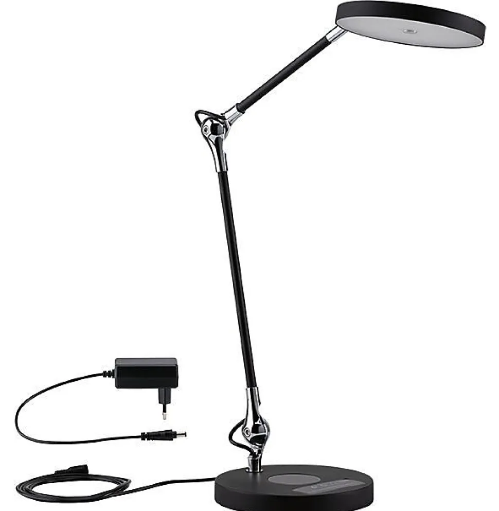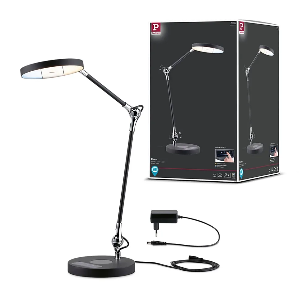 Le luminaire de bureau Numis est polyvalent ! Son noir intemporel est très beau sur un bureau. La position peut être précisément définie à l’aide des deux articulations. Sur le pied du luminaire se trouvent plusieurs commandes, dont la gradation en continu de la lumière ainsi que le choix entre blanc chaud et blanc lumière du jour.