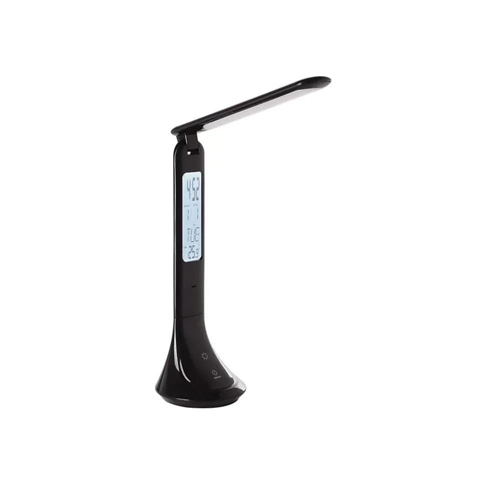 Apportez style et praticité à votre espace avec la lampe de table COLUCCIA noir. Son design épuré et moderne s’intègre parfaitement à tout type d’intérieur, que ce soit sur un bureau, une table de chevet ou dans un coin télétravail. Dotée d’un bras flexible ajustable et d’un panneau de commande tactile, elle offre plusieurs niveaux de luminosité réglable pour s’adapter à tous vos besoins : lecture, travail ou lumière d’ambiance. Cette lampe LED sans éblouissement assure un éclairage confortable, même lors d’utilisations prolongées. Pratique, elle intègre un écran digital affichant l’heure, la date et la température ambiante. Compacte, fonctionnelle et esthétique, la lampe LED COLUCCIA est le choix idéal pour un éclairage de bureau moderne.