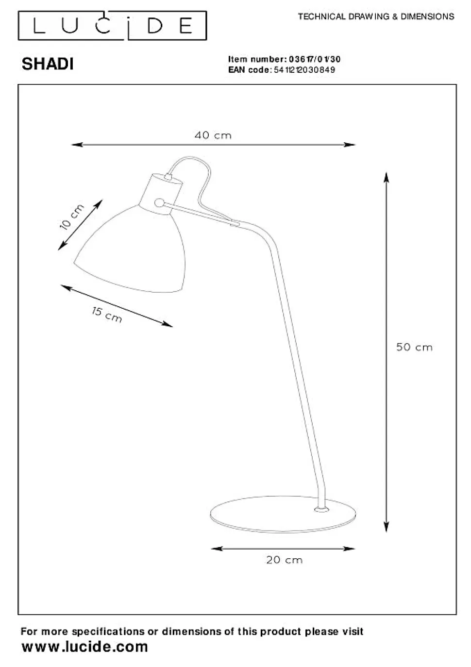 Shadi est une lame design réglable qui saura parfaitement s’adapter à l’intérieur de votre bureau. Le long câble avec un bat-jour métallique à l’extrémité assure un look attrayant. Vous pourrez également équiper Shadi avec une ampoule LED. Grâce à une luminosité de 60 W, Shadi sera suffisante pour éclairer n’importe quel espace de manière chaleureuse. En outre cette lampe de bureau avec son design contemporain est également parfaitement utilisable dans le salon. Vous pourrez tranquillement vous mettre au travail derrière votre bureau avec Shadi avec un simple clic d’un interrupteur.Caractéristiques uniques:• Utilisable avec une source lumineuse LED• Cette lampe est rotative et inclinable• Avec un interrupteur On/off sur le câble• Fabriqué en métalPrincipales caractéristiques du produit:• Consommation énergétique: 1x40W / 230V / Sans intensité variable (Ampoule non incluse)• Dimensions: Ø20 cm Haut.50 cm• 2 Ans garantie sur le luminaire / source de lumière appropriée est EAN: 5411212490766Pourquoi choisir l’éclairage Lucide?Lucide incarne un design innovant, un savoir-faire artisanal et une fiabilité exemplaire. En tant qu’entreprise familiale belge avec plus de trois décennies d’expertise, nous concevons des éclairages de haute qualité qui enrichissent et transforment chaque espace, tant intérieur qu’extérieur. Notre collection polyvalente comprend des luminaires durables et des sources lumineuses économes en énergie, soigneusement conçus par nos propres experts et fabriqués selon les normes CE les plus strictes. Grâce à notre large gamme, nous vous proposons toujours une solution d’éclairage adaptée, quel que soit le style ou l’espace. Ainsi, nous illuminons non seulement votre espace de vie mais aussi votre processus de choix dans la recherche d’un éclairage de qualité et abordable. Chez Lucide, nous combinons innovation et savoir-faire pour un éclairage qui ajoute non seulement d…