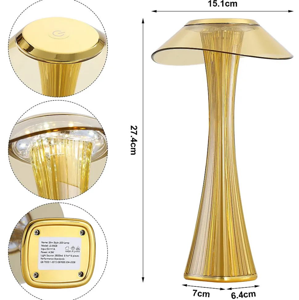Design unique : cette lampe de table LED séduit par sa forme géométrique moderne qui sublime n’importe quelle pièce. Que ce soit dans la chambre, le bureau ou le salon, elle s’adapte parfaitement à tous les styles d’intérieur et souligne votre personnalité. Intensité variable : cette lampe permet un réglage continu de la température de couleur de 3 000 K à 6 500 K et un réglage continu de la luminosité. Une simple pression sur un bouton sur le dessus suffit pour passer du jaune chaud au blanc éclatant et ajuster la luminosité selon vos besoins : l’éclairage parfait pour chaque ambiance. Sans fil et longue durée de vie : la batterie intégrée de 1 200 mAh vous libère des câbles et vous offre une expérience utilisateur flexible et sans fil. Le port de charge USB permet une charge facile et pratique. Matériau de haute qualité : cette lampe de table est fabriquée en ABS de haute qualité, robuste, durable et sûr. Dimensions : 15,1 x 15,1 x 27,4 cm. Disponible en blanc classique et en or pour répondre à vos besoins individuels. Cette lampe de table LED 3 W est économe en énergie et extrêmement durable. Applications polyvalentes : cette lampe de table LED convient à une variété d’applications, telles que les chambres, les bureaux, les salons ou les salles d’étude, offrant une expérience d’éclairage agréable.