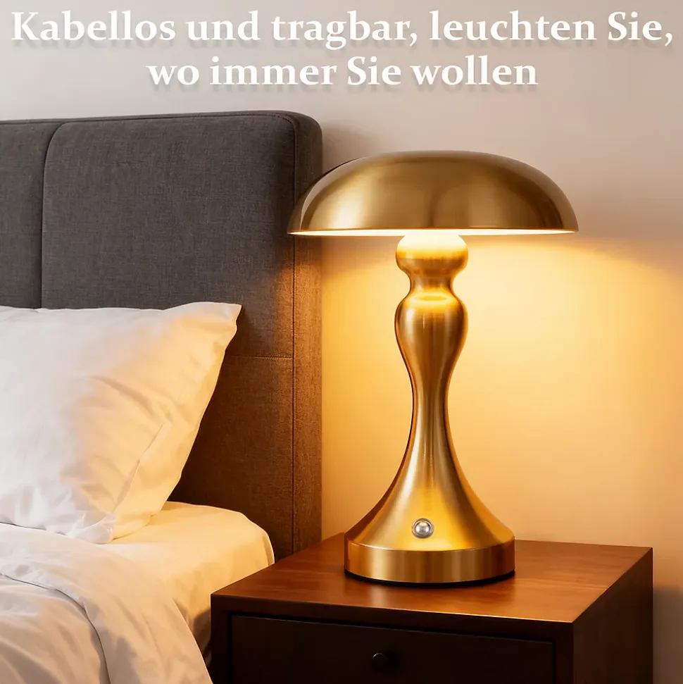 Contrôle tactile facile : cette lampe de table LED est équipée d’une fonction tactile conviviale qui vous permet de régler la couleur de la lumière (3000-6500K) et la luminosité (0-100%) d’un simple toucher. Parfait pour ajuster la lumière à vos besoins.Portable et rechargeable : la lampe à batterie rechargeable peut également être utilisée pendant la charge. Une fois chargé, vous pouvez l’utiliser de manière flexible et pratique n’importe où dans la maison. Un éclairage de secours idéal pour les situations d’urgence.Lampe de chevet LED efficace : avec une batterie au lithium intégrée de 1800 mAh, la lampe fonctionne jusqu’à 6 heures après une charge complète. La charge ne prend que 3 heures, grâce au câble de charge USB Type-C inclus.Utilisations polyvalentes : cette lampe champignon à piles s’intègre parfaitement dans n’importe quel environnement, que ce soit dans la chambre, le salon, la salle à manger ou même dans un bar. Le design rétro crée une atmosphère unique.Conception portable classique : avec une hauteur de 22 cm, il s’adapte à n’importe quelle table et armoire. Disponible en trois couleurs (nickel, bronze rouge et bronze doré), il peut s’adapter à différents styles de votre maison.