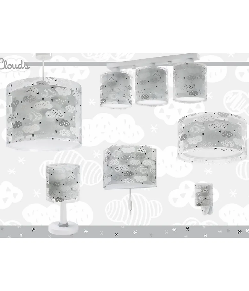 Lampe de chevet bébé Clouds gris La lampe de chevet pour bébé Clouds gris est parfaite pour donner un look original à la table de chevet dans la chambre des enfants. Réalisé en polypropylène transparent, son imprimé nuage sur fond gris apportera de la couleur et de la lumière à votre pièce.Lampe de chevet avec imprimé nuageAvec écran transparent double rondCombinez-le avec le reste des lampes pour enfants de la collection Clouds