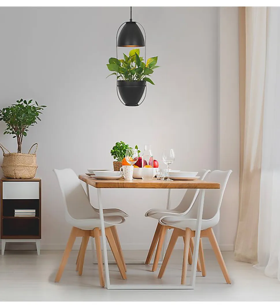 Suspension porte plante en métal laqué noir E27 / 60. W max (non fournie)Craquez pour cette lampe décorative faisant à la fois office de luminaire et de porte plante.DESCRIPTIF :- Type de produit : Suspension- Matériau : Métal- Finition : Noir- Usage : IntérieurCARACTERISTIQUES TECHNIQUES : – Dimensions : H : 150 cm – L : 12 cm- Compatible Ampoules : LED, Halogène, basse consommation- Culot : E27- Nombre d’ampoule : 1 (non fournie)- Puissance : 60 Watts max. – Longueur de cable : 50 cm- Réglable en hauteur : Oui- Voltage : 230. VATTENTION : Produit livré sans ampoule et sans planteCE QUE NOUS AIMONS : Cette suspension au design moderne apportera de la lumière et de la vie à votre intérieur.La fonction porte plante de cette lampe en fait un objet de décoration qui égaye une pièce.Vous pourrez ajuster la hauteur de votre luminaire à votre convenance avant son installation.Préférez l’utilisation d’ampoules LED avec cette lampe de plafond en métal pour des économies d’énergies.
