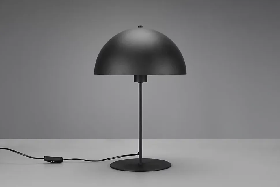 Les caractéristiques techniquesAvec son allure épurée inspirée du style classique, la lampe à poser NOLA de TRIO attire l’attention par son élégance intemporelle. Son design en forme de champignon apporte du caractère à votre décoration, qu’elle soit placée sur une table de chevet, une commode ou une console d’entrée.Le contraste raffiné entre le noir mat extérieur et l’intérieur doré ajoute une touche de chaleur et de sophistication à l’éclairage ambiant. L’allumage se fait facilement via un interrupteur à cordon intégré au câble.Fonctionnalités et avantagesCompatible avec une ampoule E27 de 40W max (non incluse), NOLA est parfaitement adaptée à l’utilisation d’une ampoule LED pour maximiser l’efficacité énergétique. En optant pour une source LED, vous bénéficiez d’un éclairage puissant et durable tout en réduisant vos consommations jusqu’à 80 % par rapport aux solutions halogènes classiques.Esthétique, fonctionnelle et respectueuse de l’environnement, la lampe NOLA combine style moderne et confort lumineux avec brio.
