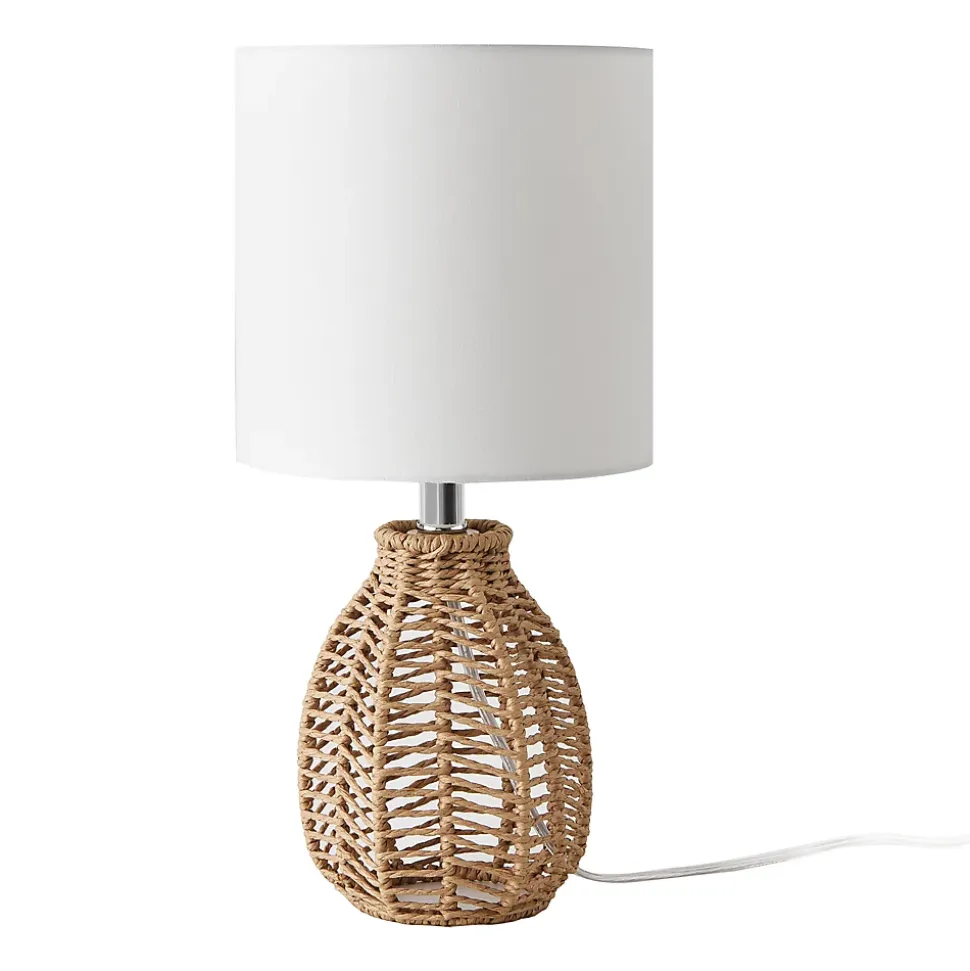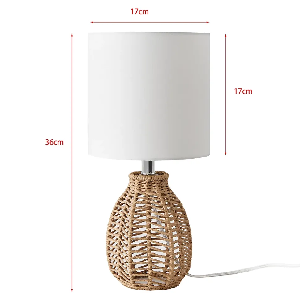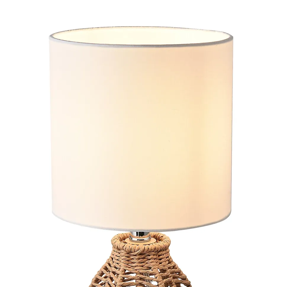 Lampe de tableNotre lampe de bureau au style unique et intemporel complétera parfaitement le décor de votre salon, chambre ou bureau. Elle apportera une ambiance chaleureuse à votre intérieur et s’adaptera facilement à tous les styles d’intérieur.Description :- lampe de table moderne et sophistiqué- idéale pour toutes pièces de la maison- design unique et attrayant- avec une douille de lampeCaractéristiques techniques :- Douille : 1 x E14, max. 40W (livraison sans ampoule)- Alimentation : 230V, 50Hz- interrupteur à cordonMatière :- structure : métal + corde de jute- abat-jour : tissu (100% polyester)Dimensions :- hauteur : 36 cm- abat-jour (hauteur x largeur) : 17 x 17 cm- longueur du câble : 150 cmCouleur :- strucutre : beige + chrome- abat-jour : blancContenu de la livraison :1 x lampe de table (l’ampoule ne fait pas partie de l’offre)Produit de la marque :lux.pro