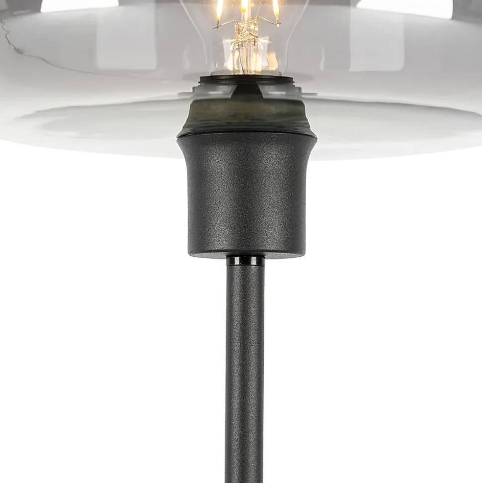 Votre intérieur Art déco a besoin d’un petit coup de frais ? Alors la lampe de table Bizle est faite pour vous ! Fabriquée en verre fumé et en acier, elle est présentée dans une finition grise et noire. Bizle a un diamètre de 28 cm et une hauteur de 46 cm. La lampe de table dispose d’un culot E27. N’oubliez pas de commander l’ampoule séparément. Elle est livrée avec un cordon et une prise. Le cordon mesure 200 cm de long. Vous avez besoin de moins de lumière ? Bizle est équipée d’un variateur d’intensité, mais celui-ci n’est pas inclus. Avec Bizle, vous êtes toujours entre de bonnes mains : vous allez vouloir cette lampe de table dans votre maison, n’est-ce pas ?