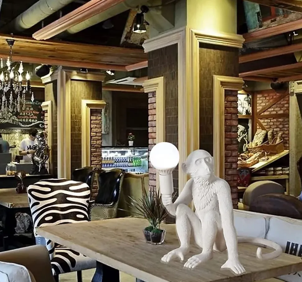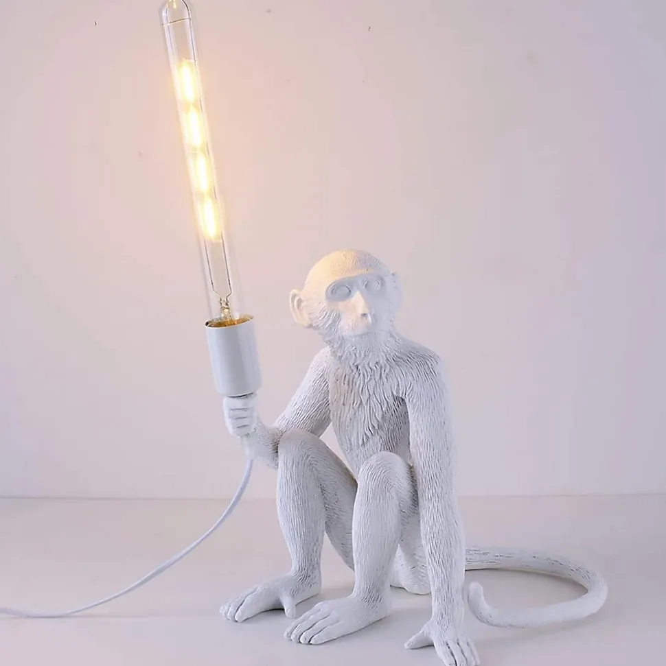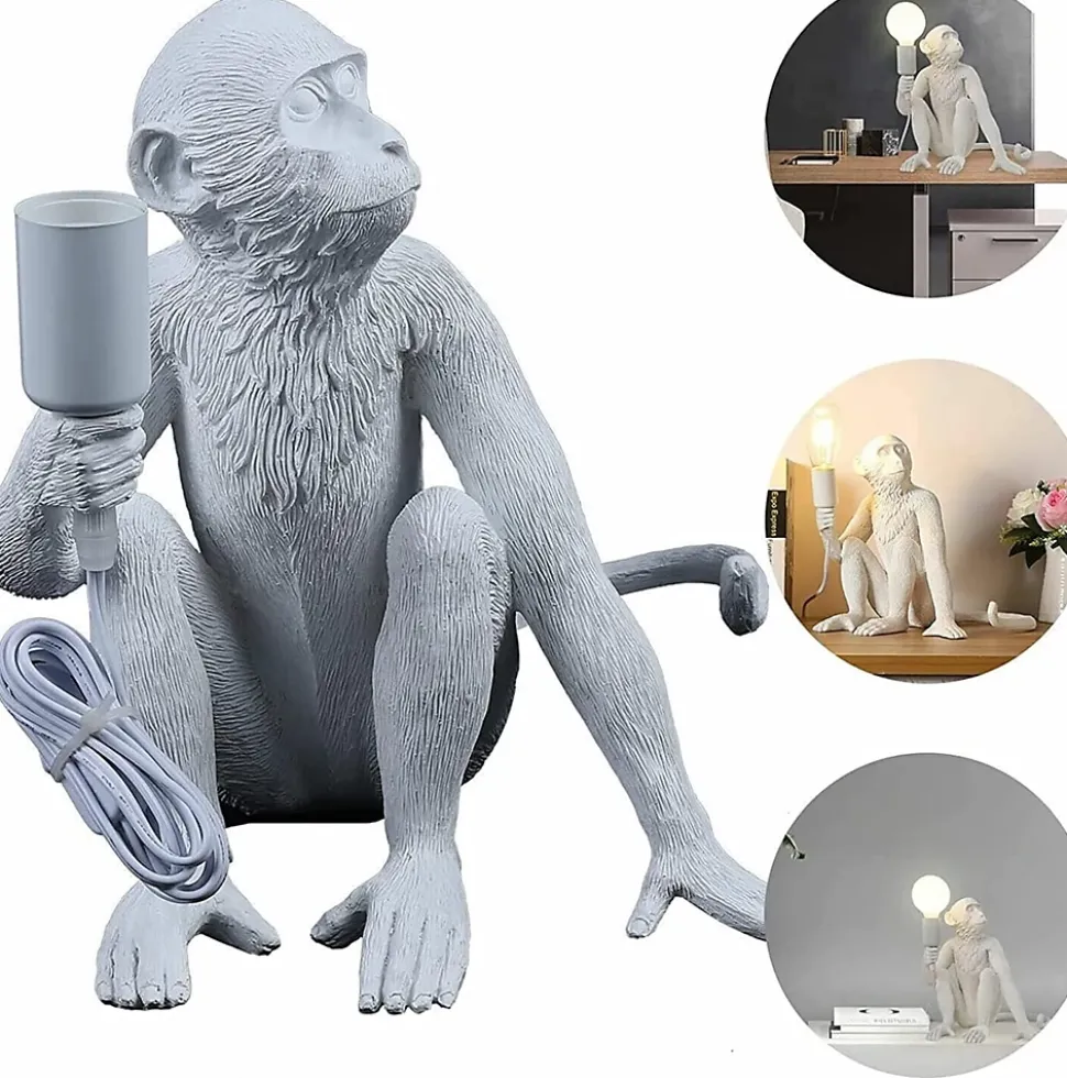 Lampe de table « Daisy » en résineLa lampe de table « Daisy » est une pièce de design amusante et audacieuse, représentant un singe assis tenant une ampoule.Cette lampe de design apportera une touche originale à n’importe quel espace intérieur, créant une ambiance pleine de charme et de créativité.Disponible en 3 couleurs : blanc, noir et doré. Fabriquée en résine de haute qualité, la lampe « Daisy » n’est pas seulement une source de lumière, mais aussi une pièce décorative d’une grande originalité. Le singe tient l’ampoule de manière charmante, créant une scène animée et unique qui ajoute une touche distinctive à tout espace. Grâce à son style artistique et ludique, cette lampe deviendra un véritable atout dans votre maison ou bureau.Elle est équipée d’un support pour ampoule E27 d’une puissance maximale de 60W. Elle comprend également un câble de 160 cm avec interrupteur et prise pour faciliter son utilisation.