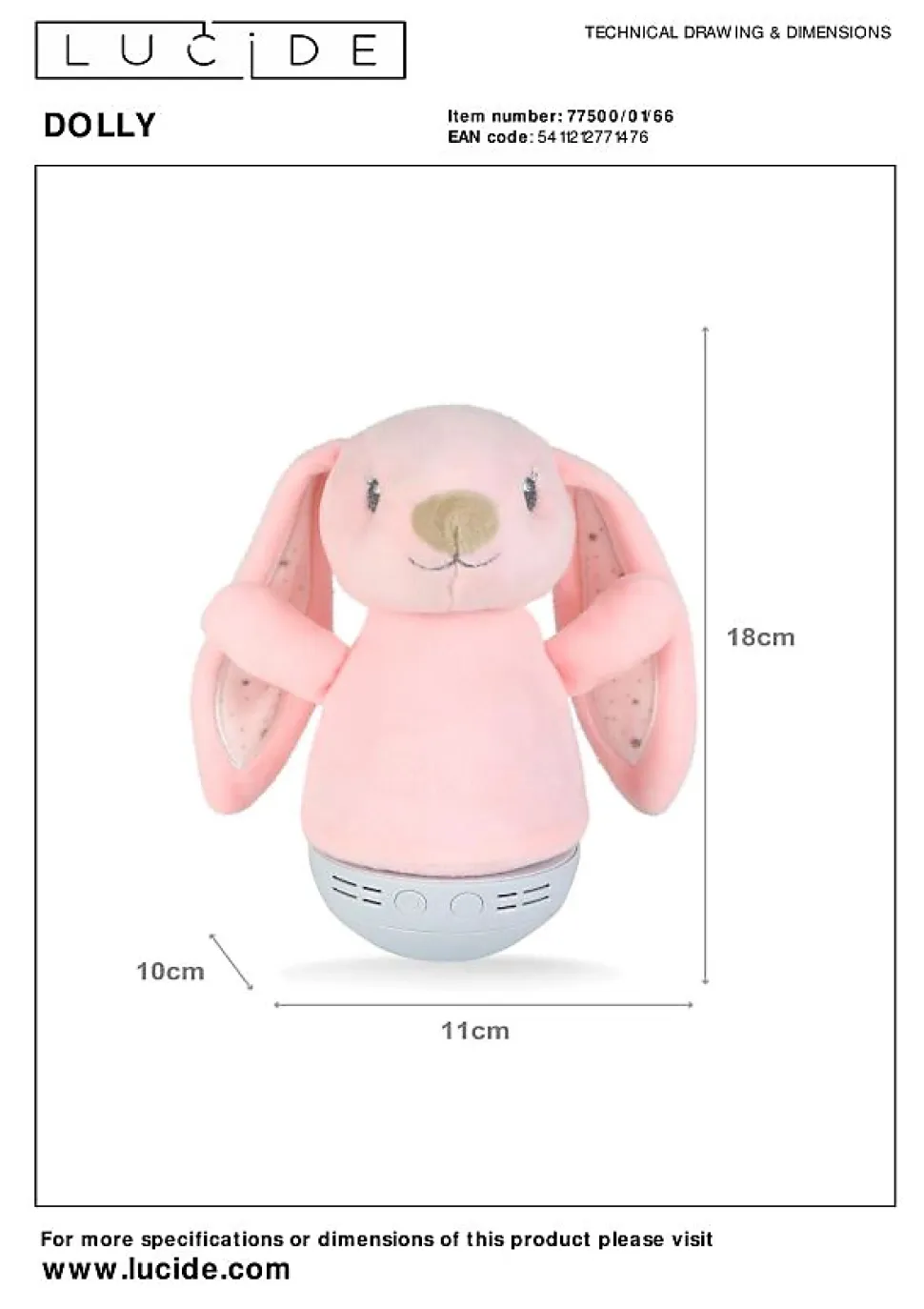 Chaque bébé a besoin de se sentir en sécurité, jour et nuit. Mais la nuit, vous voulez aussi dormir un peu. Dolly pourrait bien vous aider. Cette veilleuse rechargeable pour bébé est spécialement conçue pour une utilisation sécurisée dans la chambre d’enfant. Elle fonctionne sur piles et se commande facilement grâce à l’interrupteur intégré. En plus de sa lumière douce, qui apporte un sentiment de sécurité, Dolly dispose également d’une fonction musicale qui joue de douces mélodies pour apaiser et détendre encore davantage votre bébé. Le tissu doux et translucide offre confort et protection. Et avec les joyeux motifs d’animaux, à la fois ludiques et extrêmement adorables, c’est une véritable surcharge de mignonnerie. Vous êtes prévenu !Caractéristiques uniques:• Équipé d’une lampe LED intégrée• Dispose d’une lumière blanche chaude (2700K)• Avec un interrupteur On/off sur la lampe• Avec fonctionnalité musicalePrincipales caractéristiques du produit:• Specialement concu pour une utilisation dans une chambre d’enfant• Fonctionne sur piles• Dimensions: Lon.10 x Larg.11 x Haut.18 cm• 3 Ans garantie sur le luminairePourquoi choisir l’éclairage Lucide?Lucide incarne un design innovant, un savoir-faire artisanal et une fiabilité exemplaire. En tant qu’entreprise familiale belge avec plus de trois décennies d’expertise, nous concevons des éclairages de haute qualité qui enrichissent et transforment chaque espace, tant intérieur qu’extérieur. Notre collection polyvalente comprend des luminaires durables et des sources lumineuses économes en énergie, soigneusement conçus par nos propres experts et fabriqués selon les normes CE les plus strictes. Grâce à notre large gamme, nous vous proposons toujours une solution d’éclairage adaptée, quel que soit le style ou l’espace. Ainsi, nous illuminons non seulement votre espace de vie mais aussi votre processus de choix dans la recherche d’un éclairag…