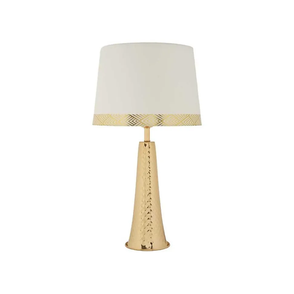 Aspect : Matériau principal = Métal • Matériaux secondaires = Tissu • Autres dimensions : Hauteur abat-jour = 21 • Dimensions : Diamètre (en cm) = 30 • Hauteur (en cm) = 54 • Autres caractéristiques : Informations complémentaires = Ampoule compatible E27 non fournie • Poids (en kg) = 1,50 • Lampe de table en métal Tower 30 x 54 cm